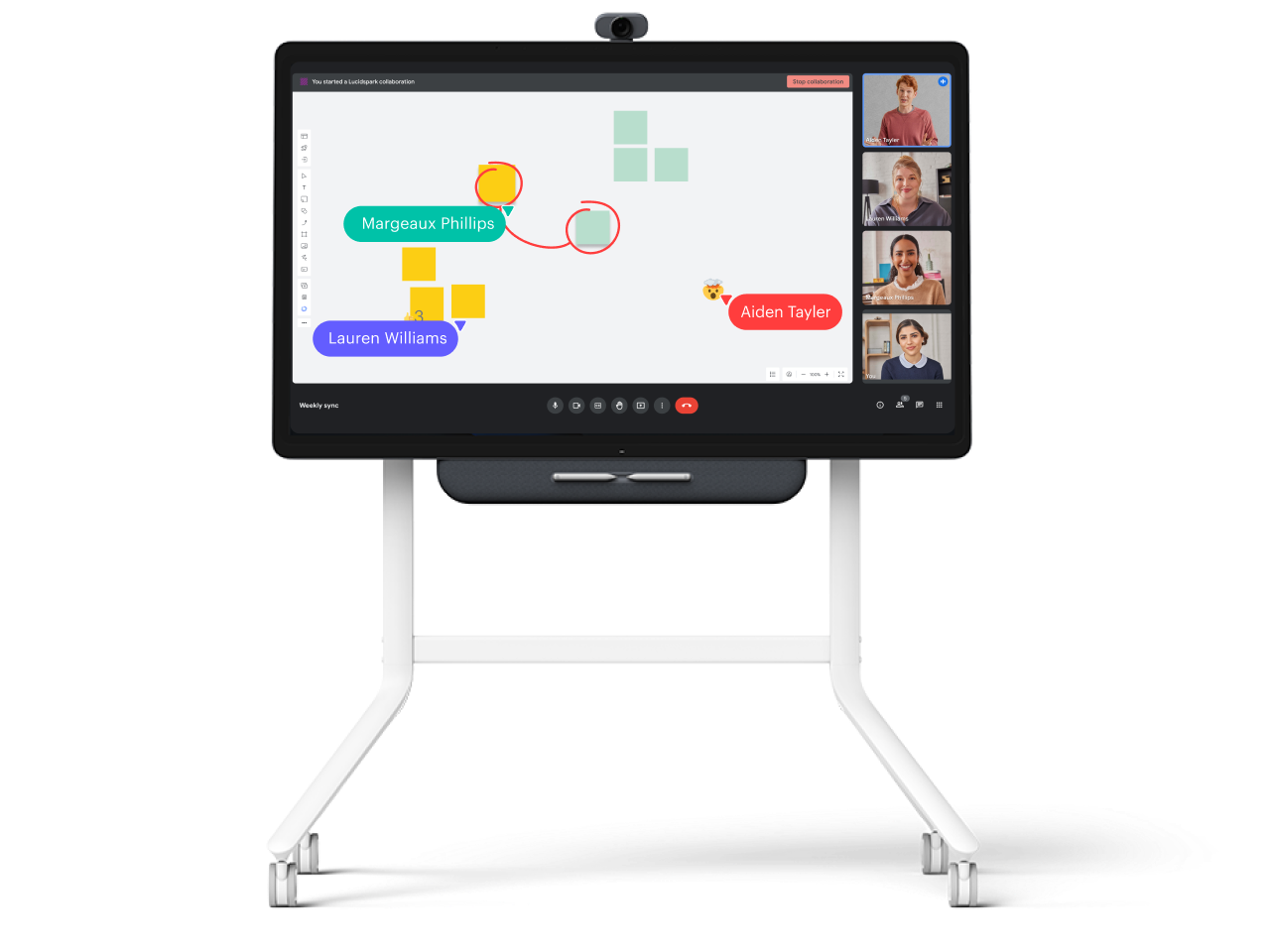 Paired with Webex video conferencing, Cisco’s interactive whiteboard devices integrate with Lucidspark to enable in-person teams to collaborate with remote team members.