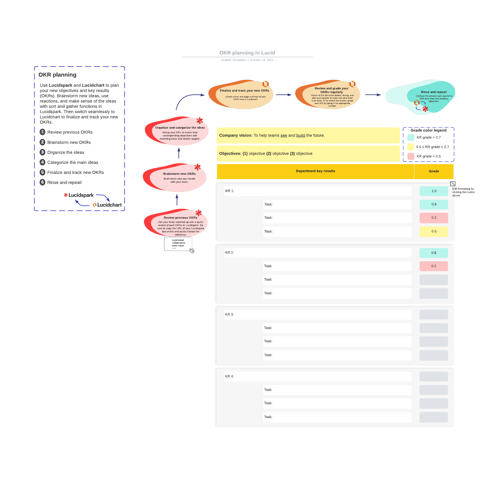 Lucidspark is het virtuele whiteboard dat teams verbindt, zodat ze hun beste ideeën tot leven kunnen brengen. Lucidspark, één van de drie individueel krachtige en toch sterk verbonden visuele samenwerkingsproducten van Lucid, maakt real-time of asynchrone brainstorming, planning en organisatie van ideeën tot bruikbare volgende stappen mogelijk. Naast Lucidspark biedt Lucid de producten: Lucidchart, gebouwd voor het maken van intelligente diagrammen en airfocus, een slimme tool voor het in kaart brengen en managen van je product roadmaps. Gecombineerd ondersteunen deze producten je tijdens elke fase van je werk. De producten van Lucid Software worden door meer dan 100 miljoen gebruikers wereldwijd gebruikt en 99% van de fortune 500 vertrouwt op de producten van Lucid voor hun dagelijkse werk.