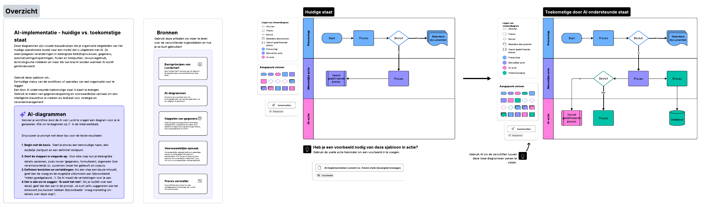 Leg de huidige staat van de operaties van je organisatie vast en breng vervolgens in kaart hoe de toekomstige staat eruit zal zien na de introductie van kunstmatige intelligentie.