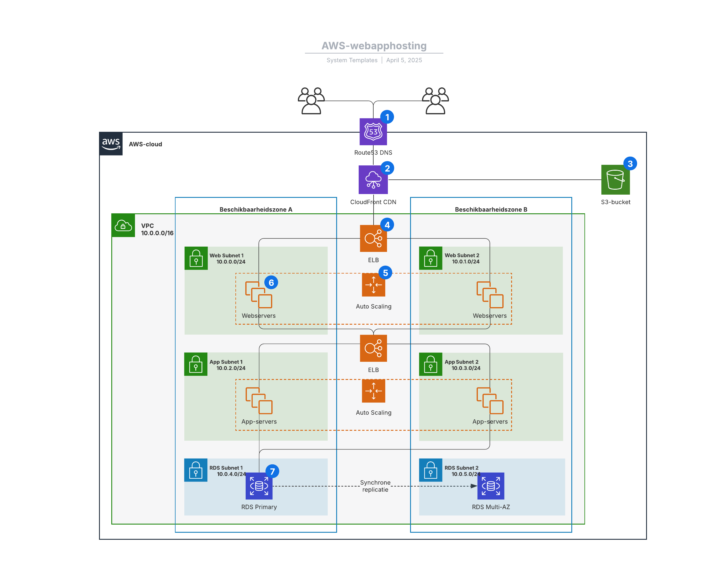 Open deze sjabloon om een zeer beschikbaar en schaalbaar AWS-systeem voor webhosting te bekijken.