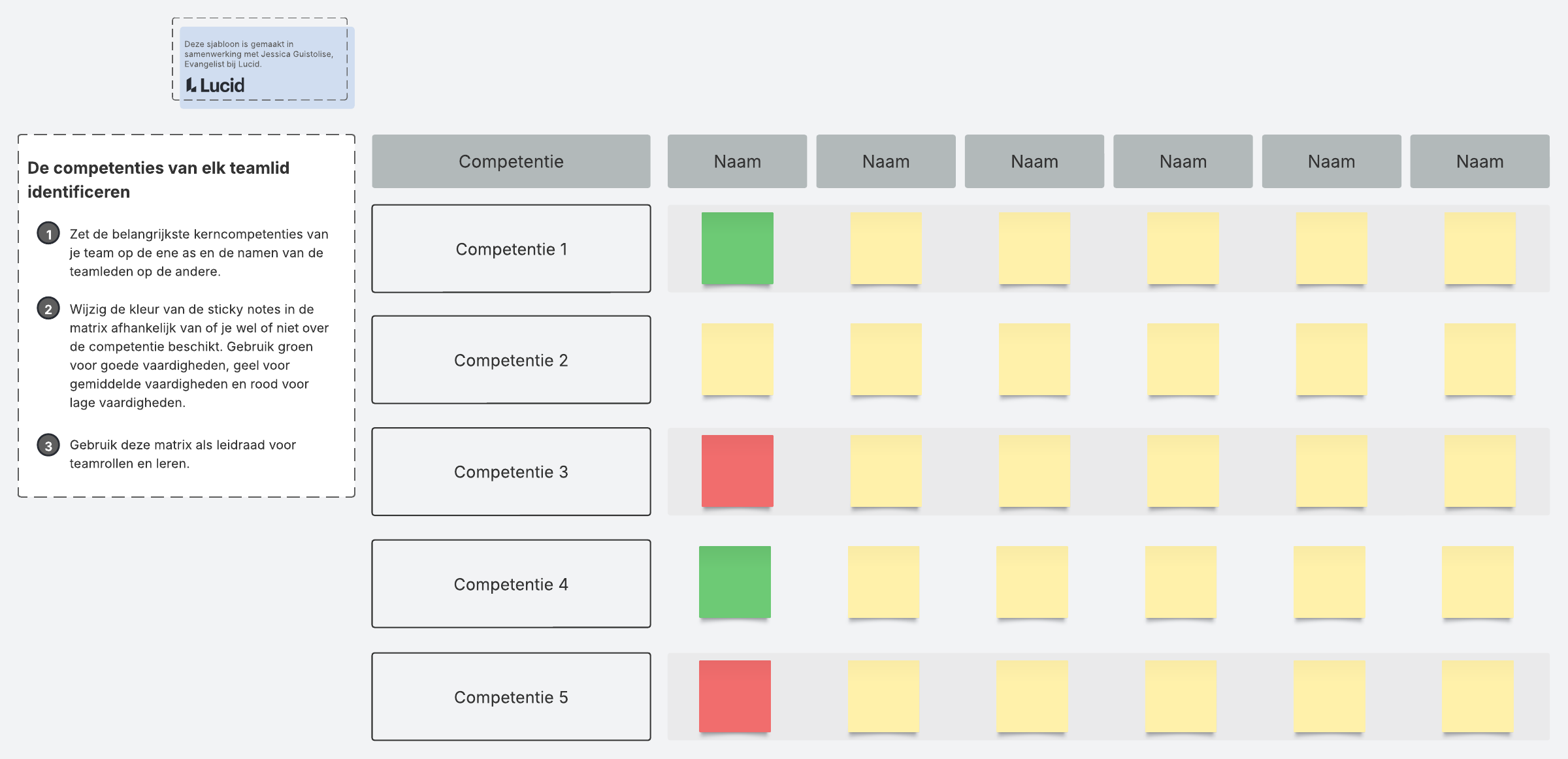 Gebruik deze teamcompetentiematrix om individuele sterke punten toe te wijzen.