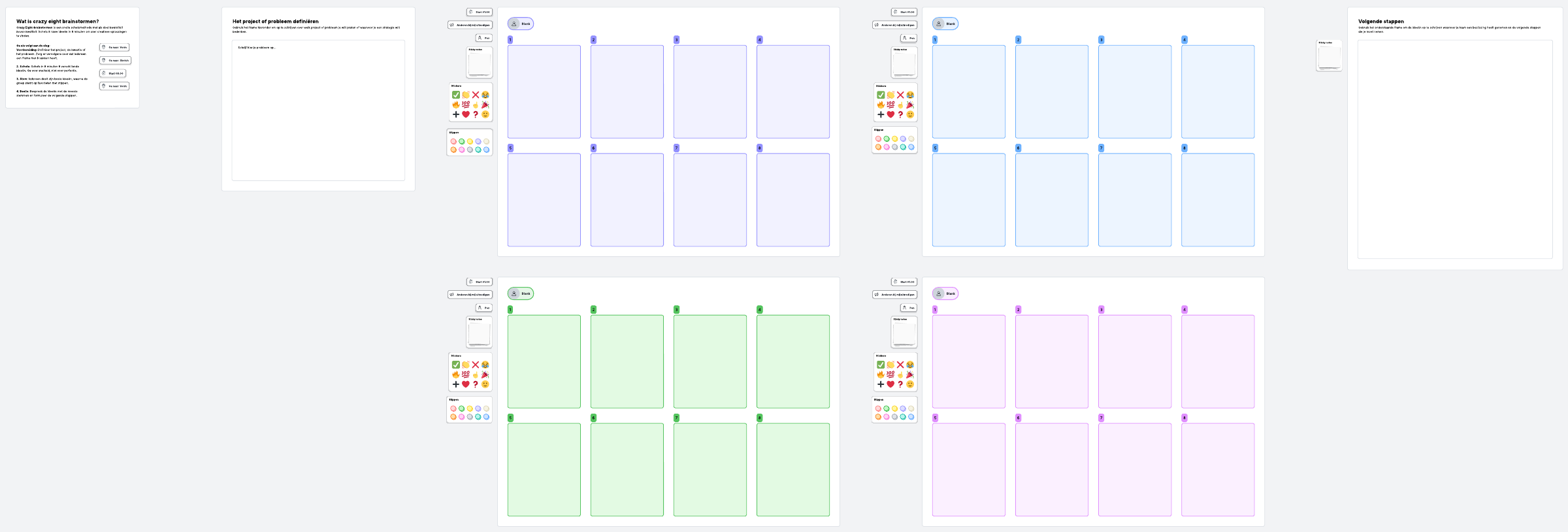 Gebruik deze sjabloon om snel een brede waaier aan ideeën te genereren. Het doel is om in 8 minuten 8 verschillende concepten te schetsen. Leg de nadruk op kwantiteit boven kwaliteit!