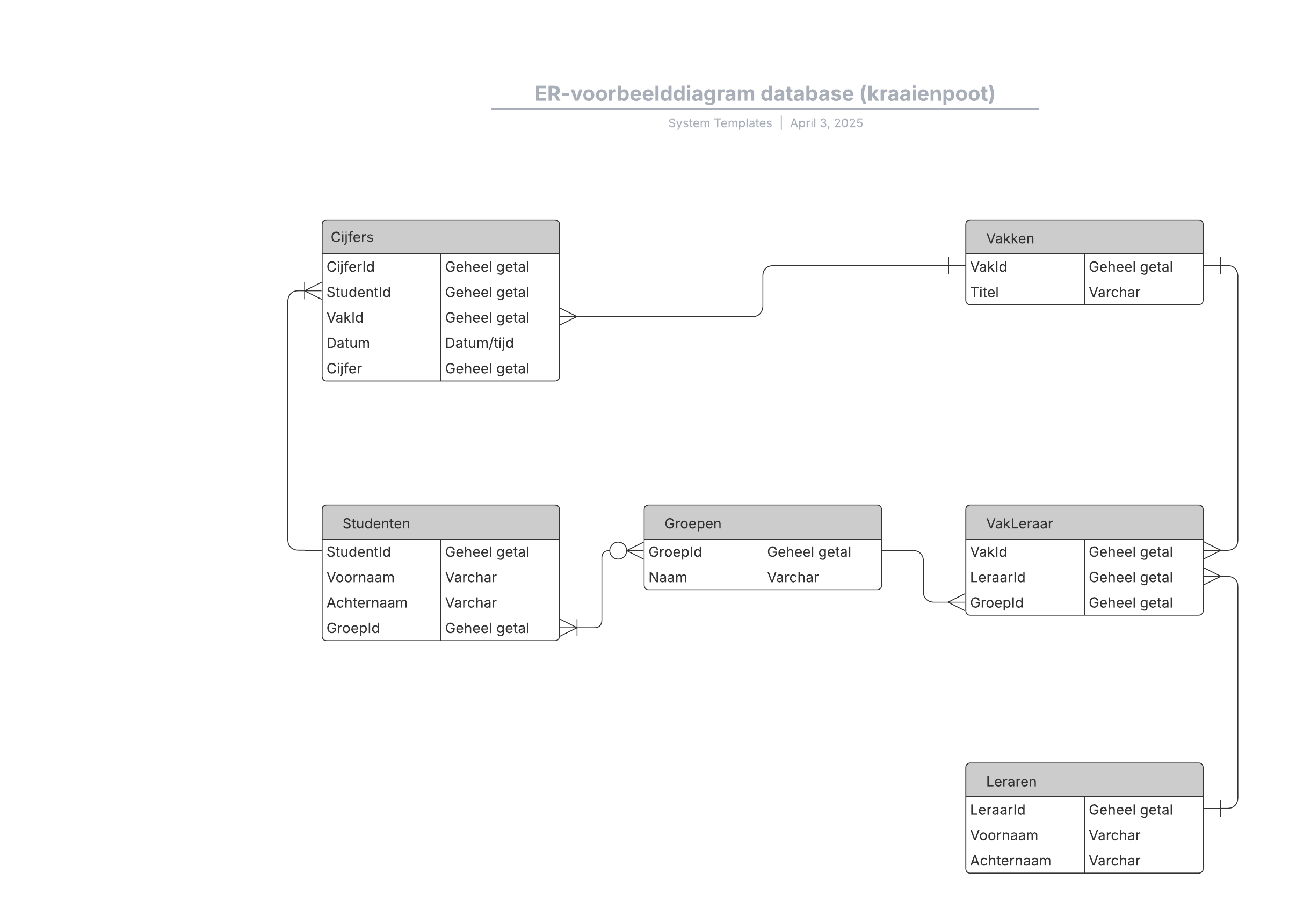 Met deze voorbeeldsjabloon voor een ER-diagram voor een database kunt u: