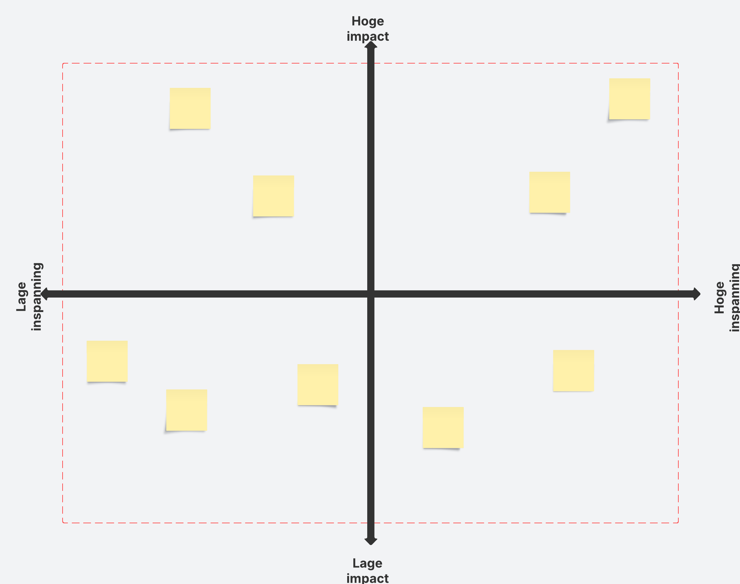 Gebruik deze impact-inspanningsmatrix om ideeën te ordenen op basis van de inspanning die nodig is om ze te realiseren en de potentiële impact.