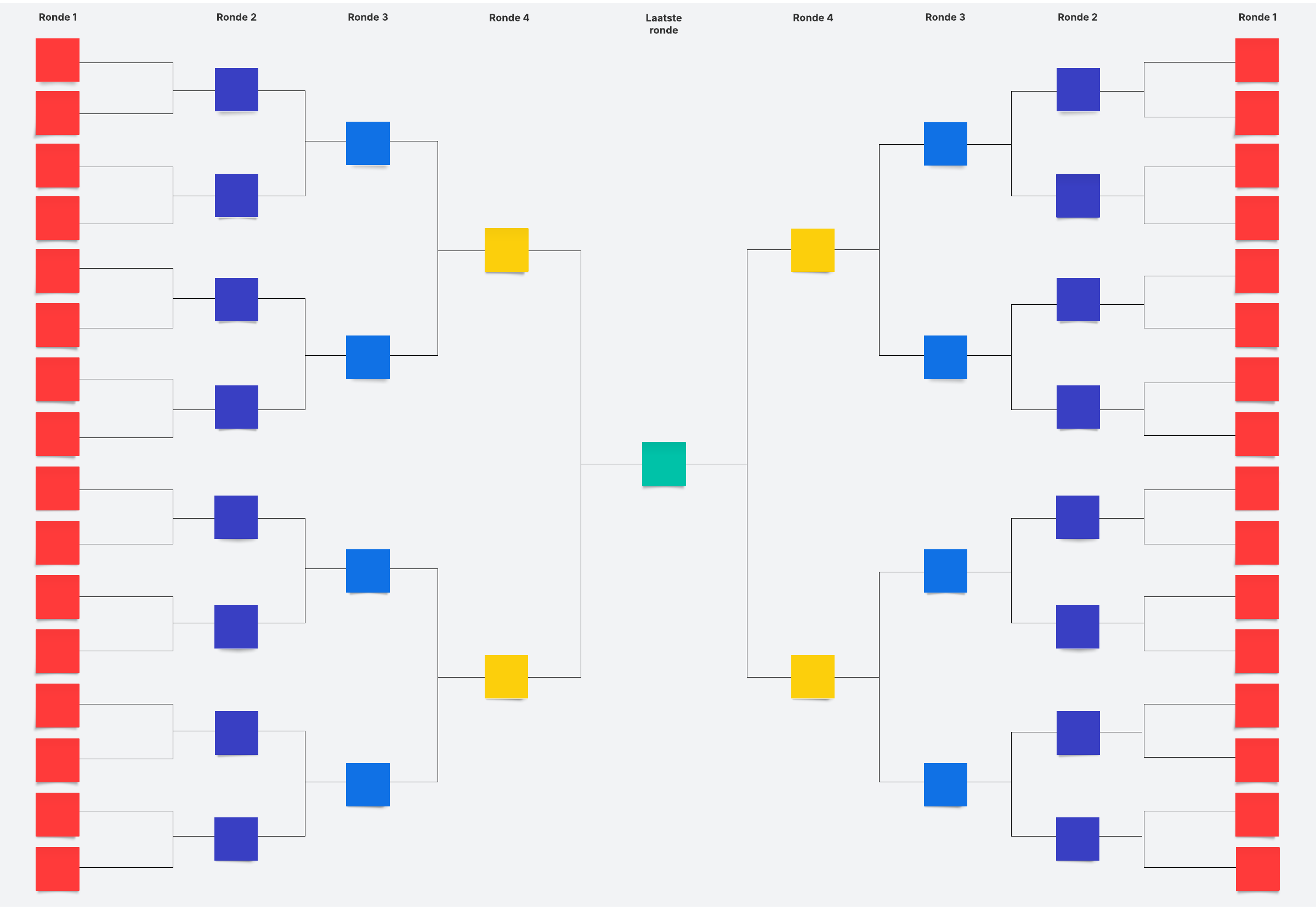 Gebruik het pouleschemasjabloon om beslissingen te visualiseren, teamcompetities te houden en alles wat je verder nodig hebt om beslissingen te nemen via enkele eliminatie.