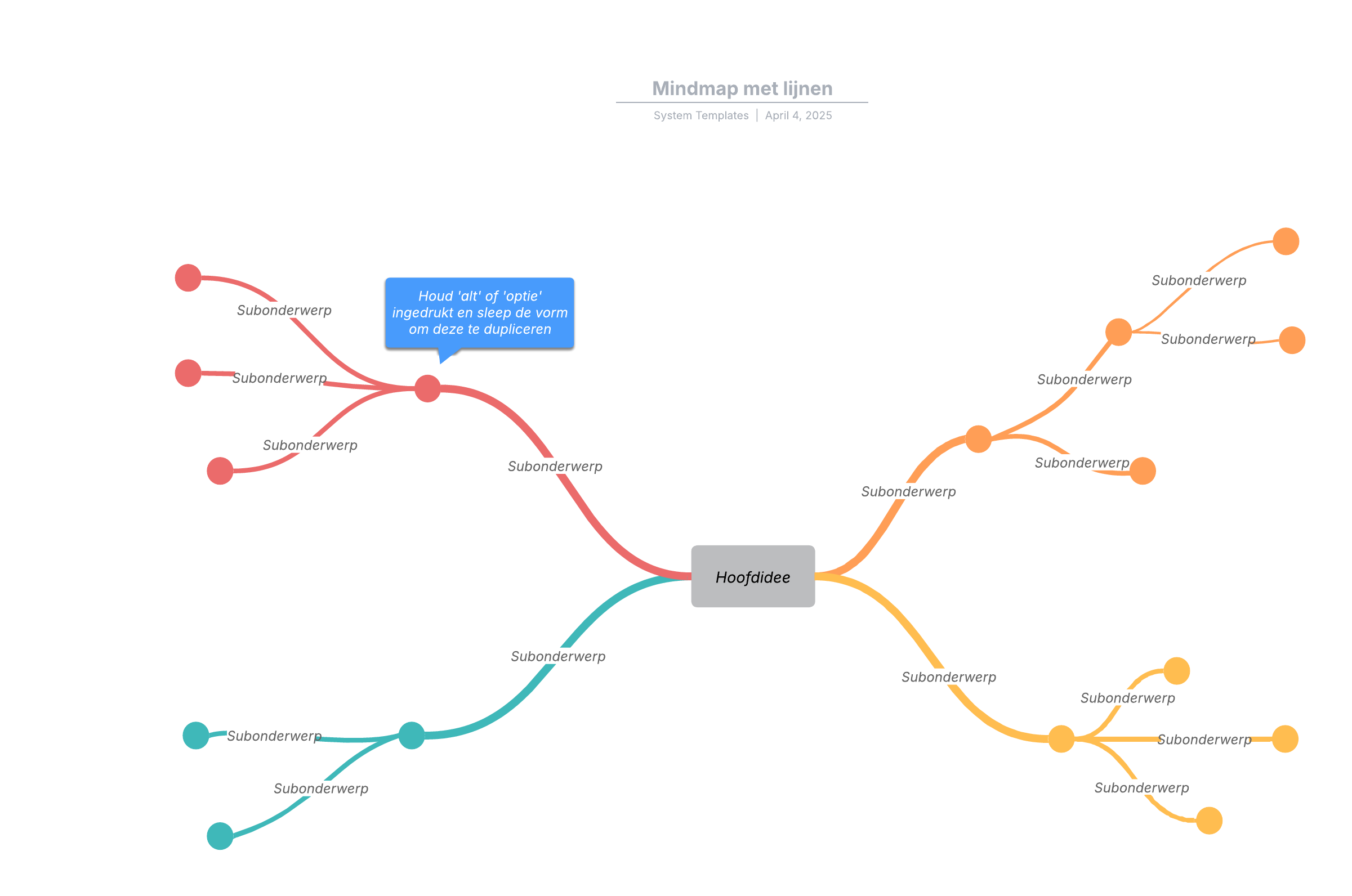 Met deze sjabloon voor mindmaps met lijnen kunt u:
