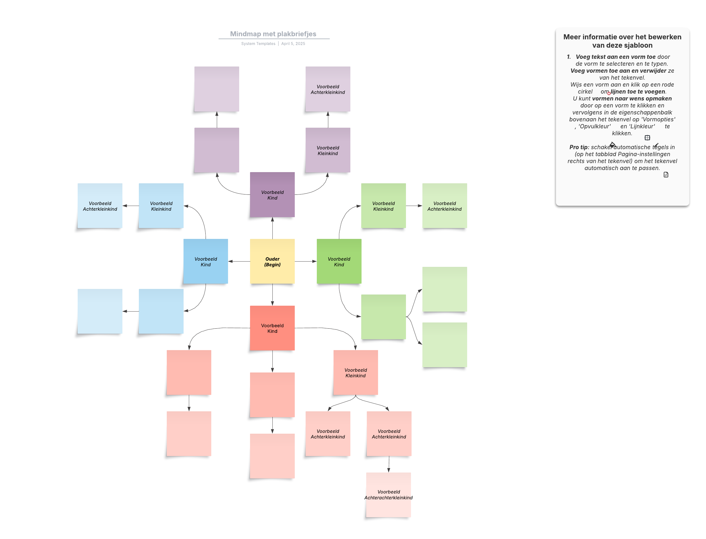 Open deze sjabloon en voeg inhoud toe om dit diagram voor een mindmap met plakbriefjes aan te passen op uw use case.