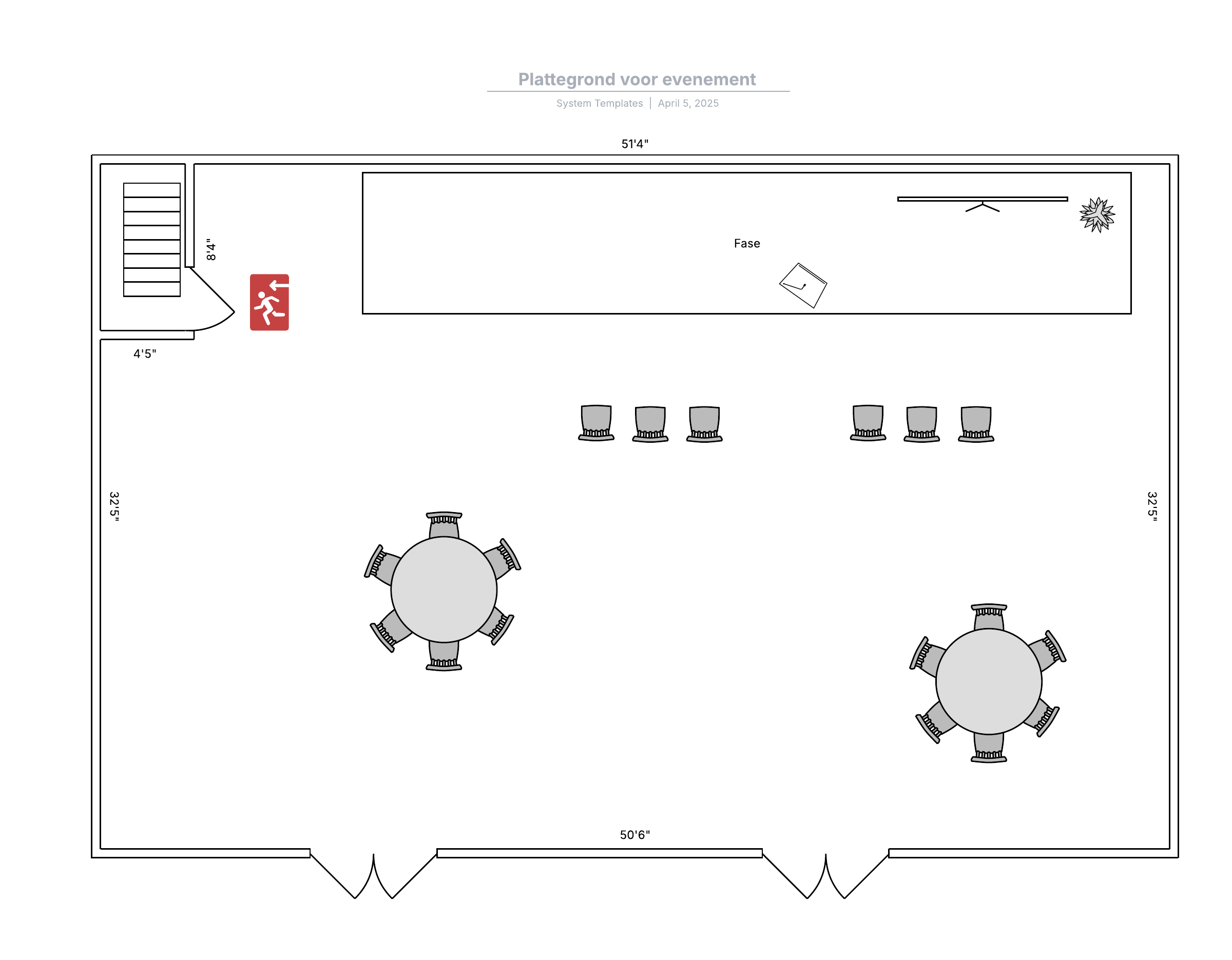 Open deze sjabloon en voeg inhoud toe om deze basisplattegrond voor evenementen aan te passen op uw use case.