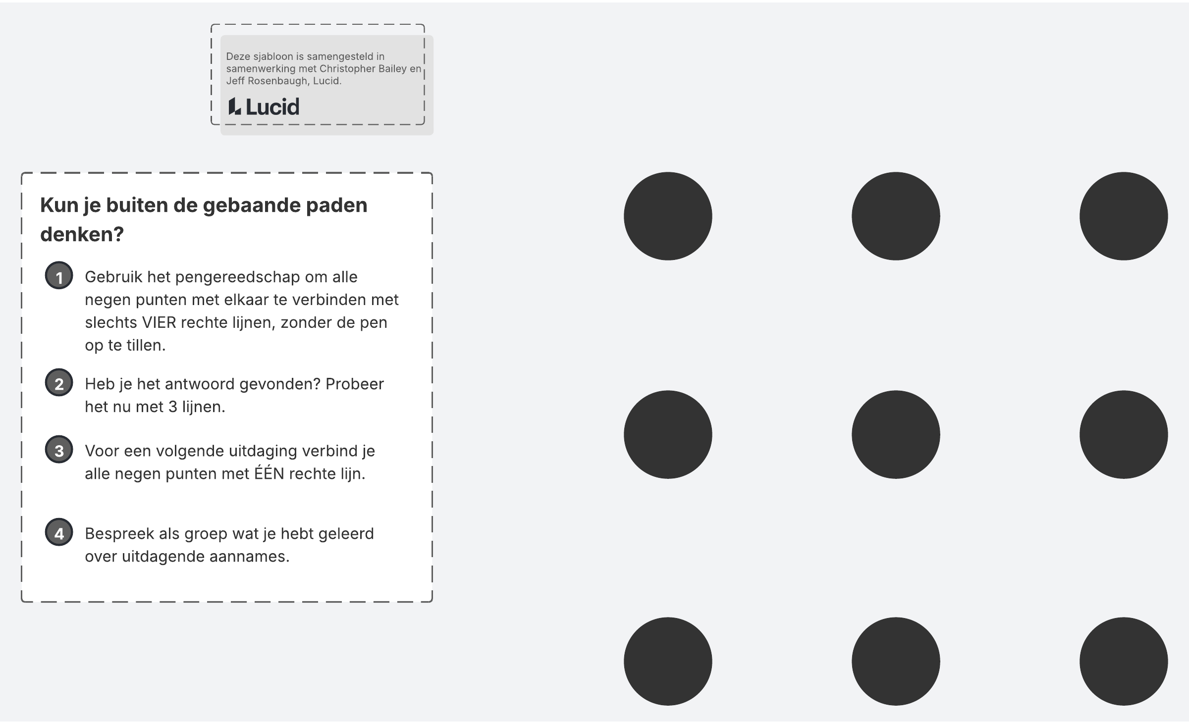 Til je probleemoplossing out of the box met deze sjabloon voor de negen stippen puzzel.