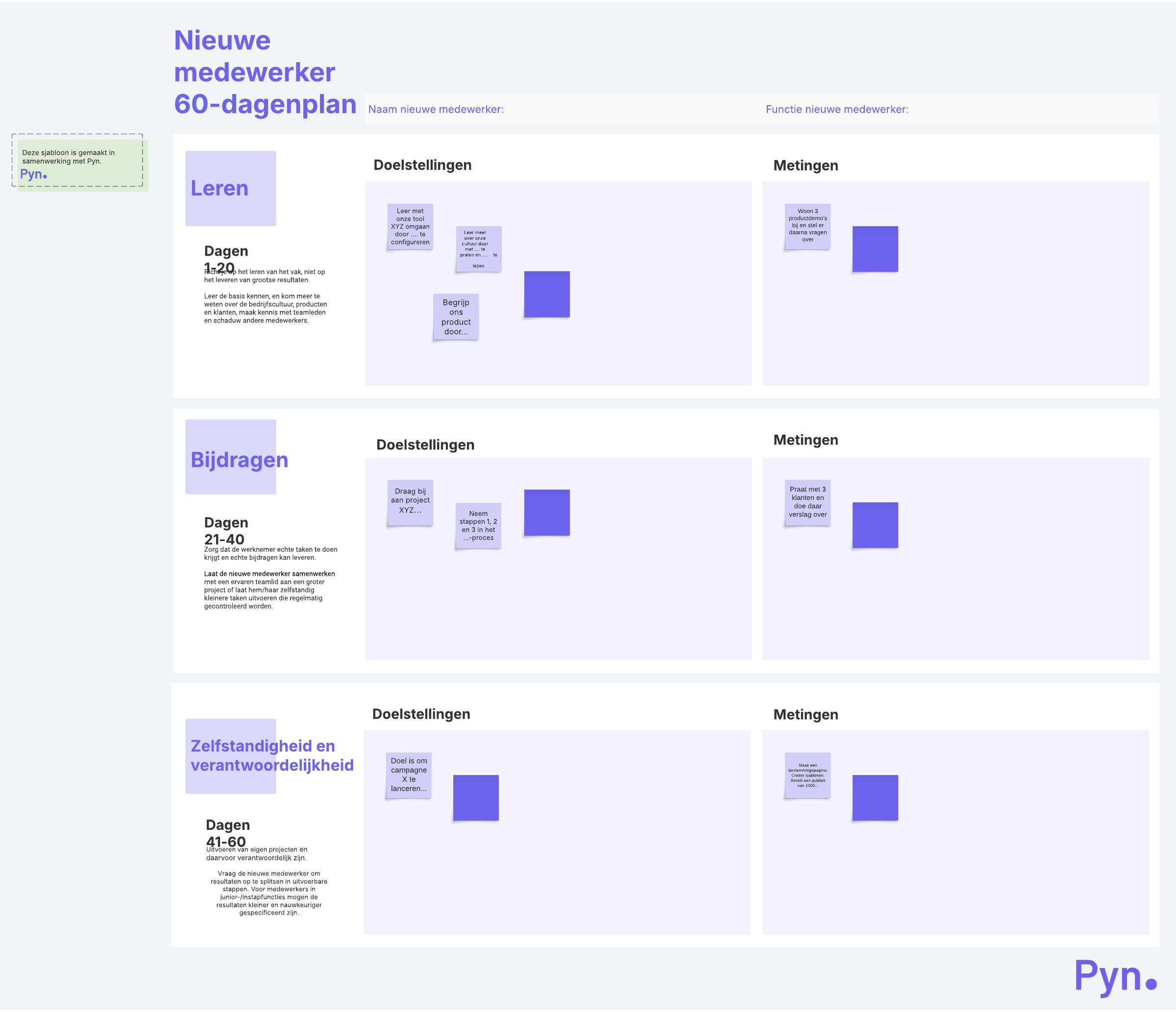 Leid je nieuwe medewerkers al doende van de 'leerfase' naar de 'verantwoordelijkheidsfase' met het 60 dagen onboardingplan van Pyn.