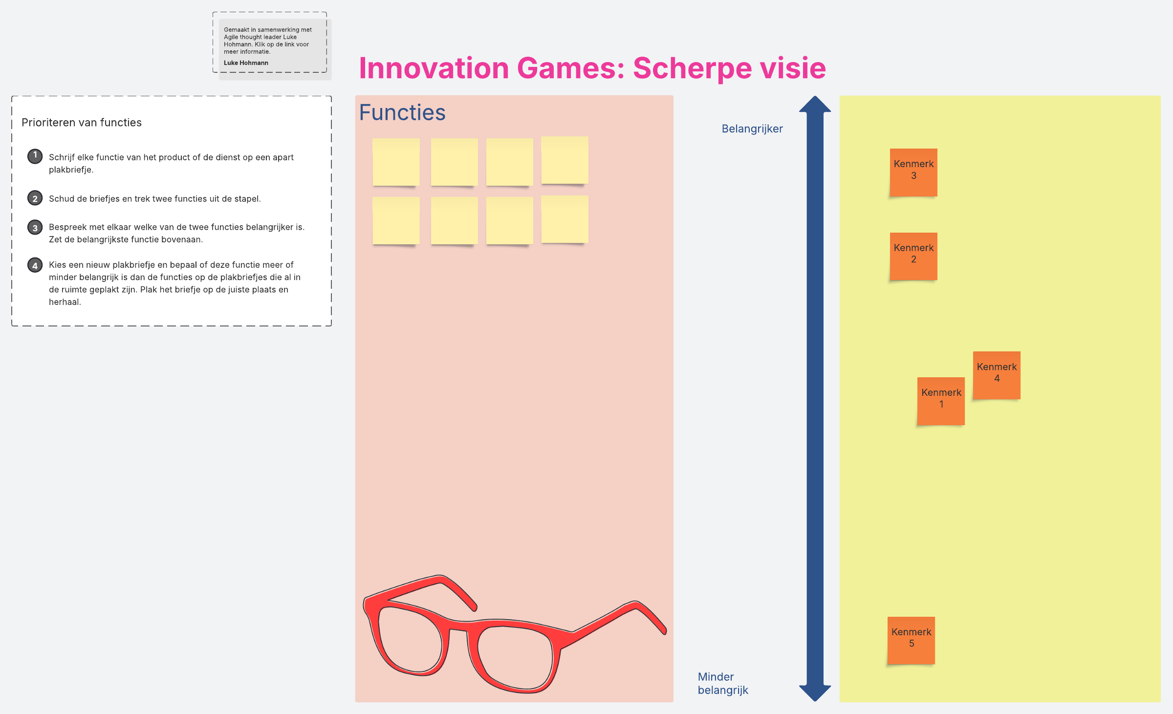 Prioriteer de functies van je product met deze scherpziende sjabloon van Innovation Games.
