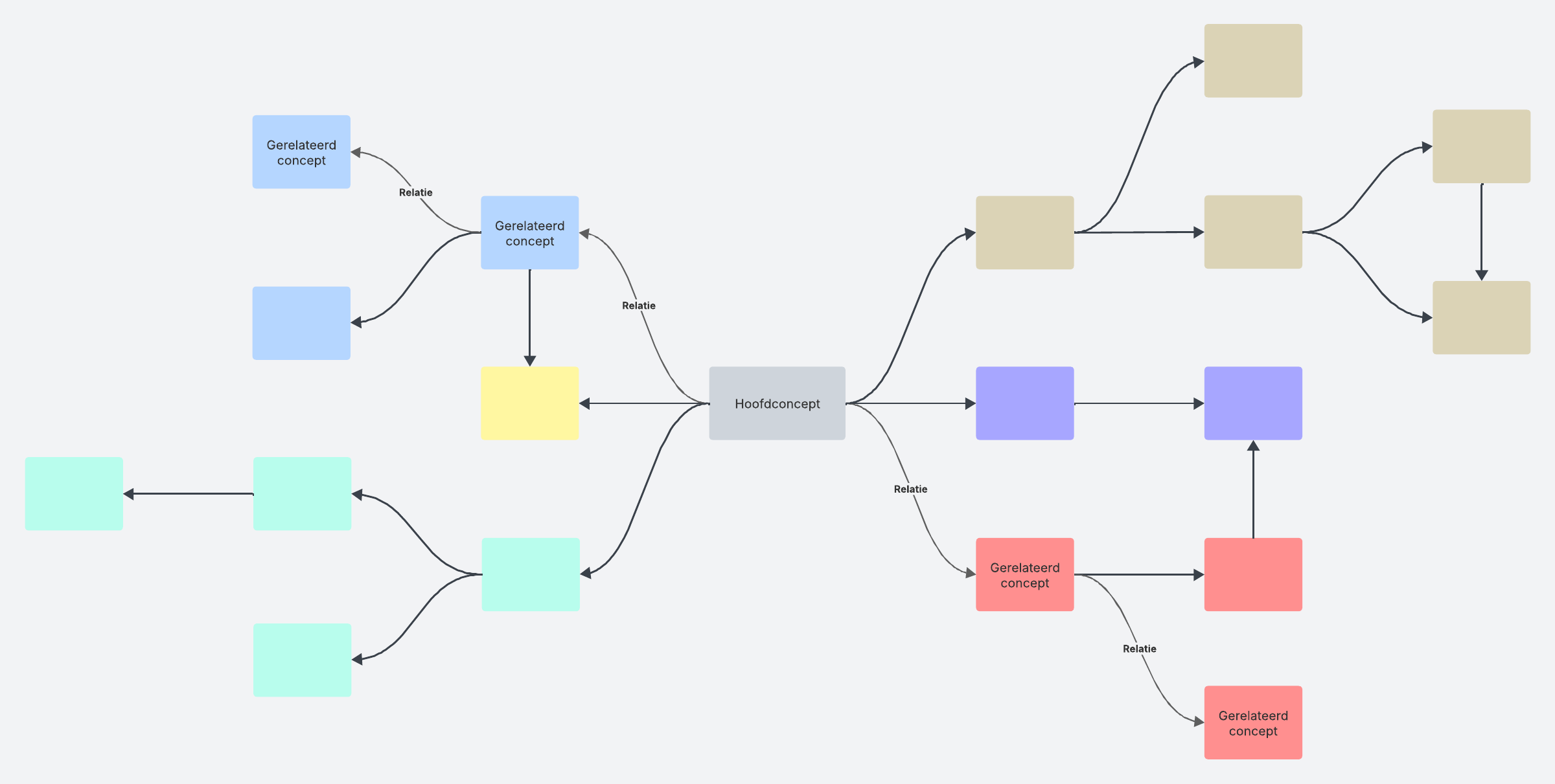 Geef de relaties tussen concepten en ideeën visueel weer. Een conceptmap verbindt ideeën aan de hand van lijnen die zijn gelabeld met verbindingswoorden en -zinnen, zodat u gemakkelijk kunt zien hoe alles samenhangt.
