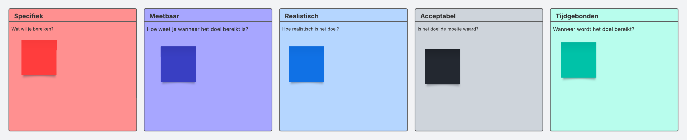 SMART is een acroniem voor Specifiek, Meetbaar, Acceptabel, Realistisch en Tijdgebonden. Maak SMART-doelen om jou en je team te helpen op koers te blijven en betekenisvolle vooruitgang te boeken.