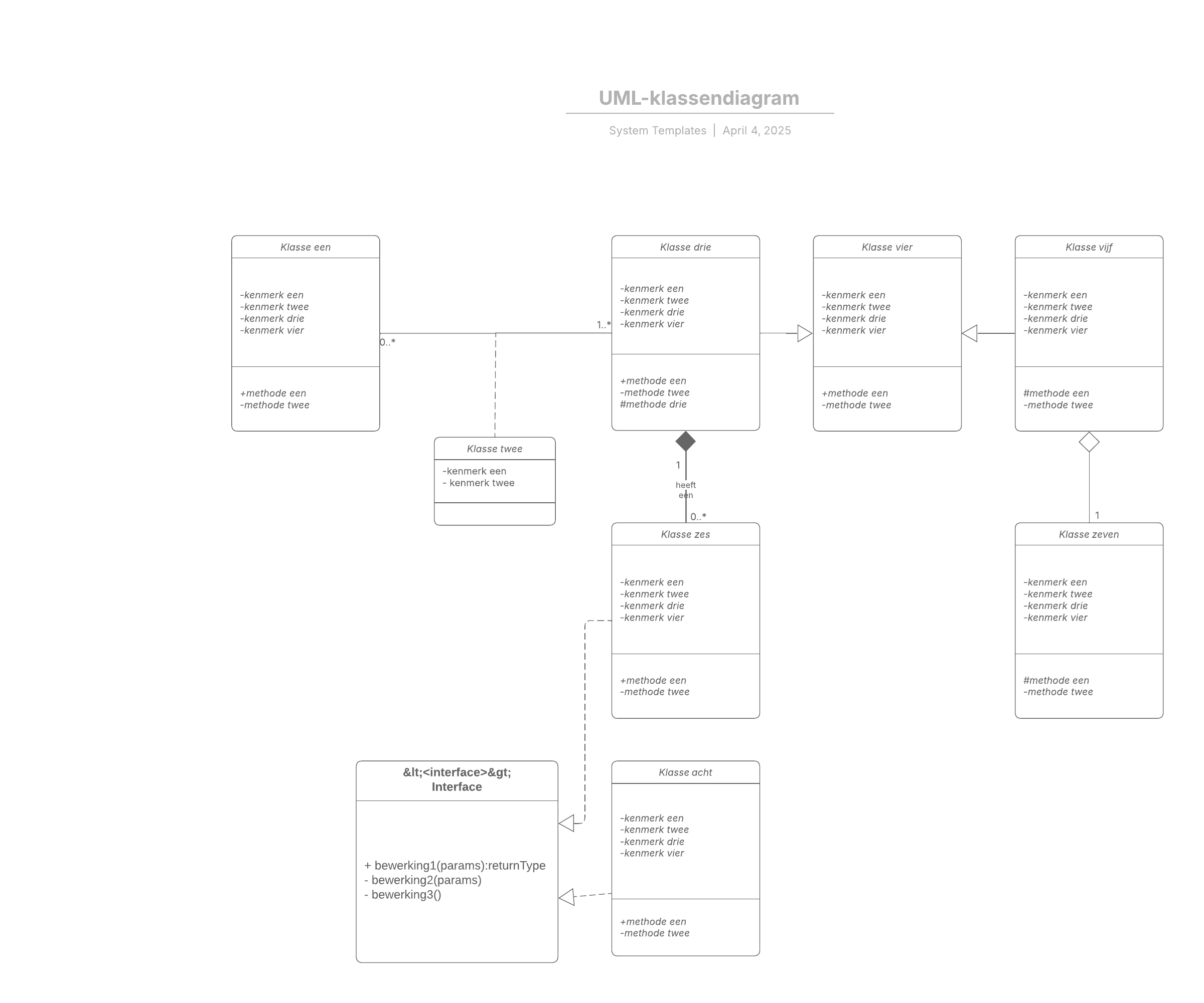 UML-klassendiagrammen zijn gewone diagrammen die de structuur van een systeem beschrijven door de klassen, attributen, bewerkingen en relaties tussen objecten te modelleren.