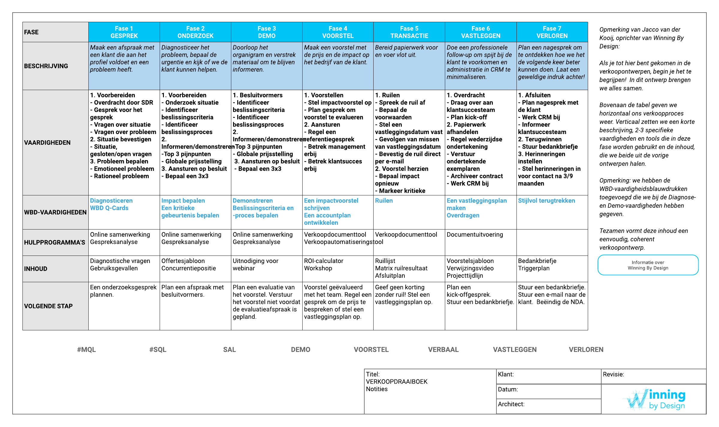 Met deze sjabloon voor een verkoopdraaiboek van Winning By Design kunt u: