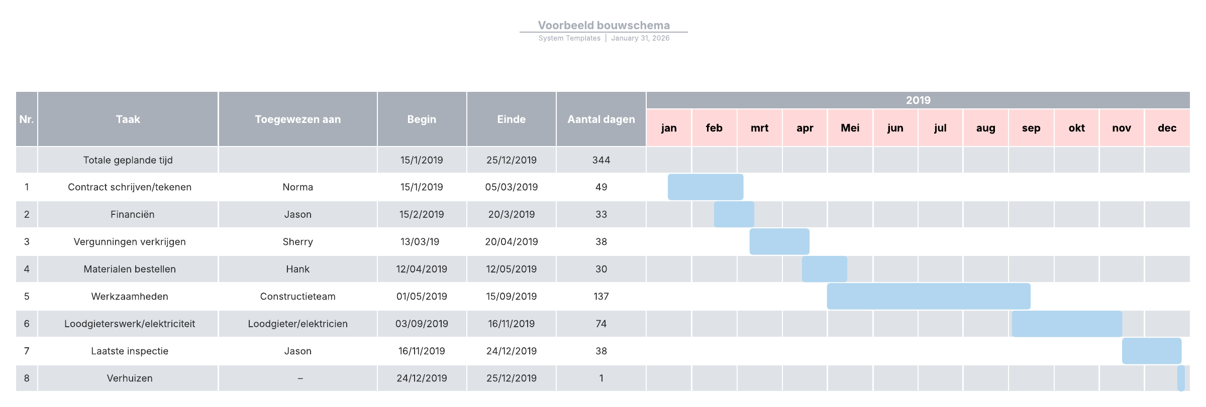 - de duur van een bouwproject visualiseren.