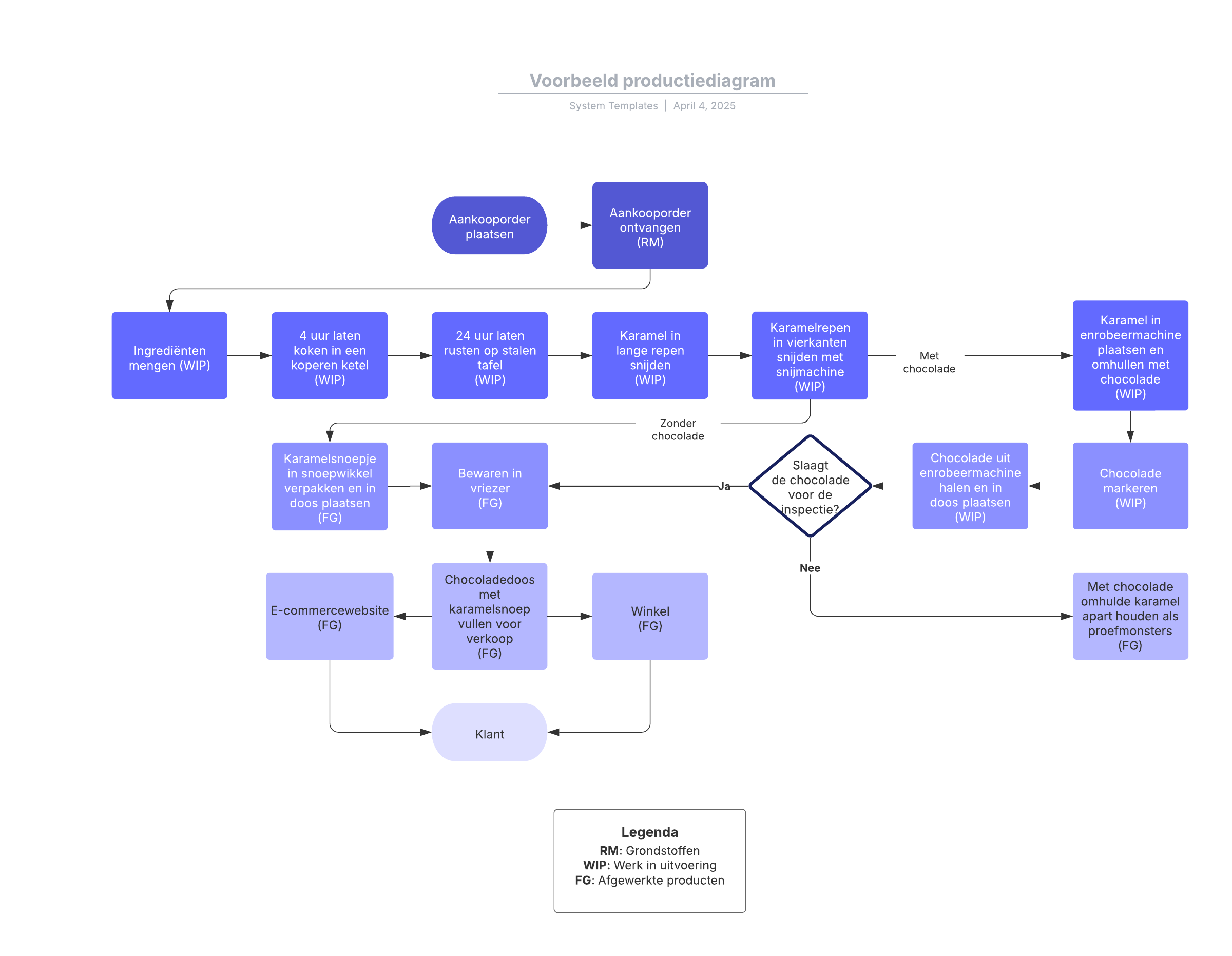 Open deze sjabloon voor een gedetailleerd voorbeeld van een productiediagram dat u kunt aanpassen op uw use case.