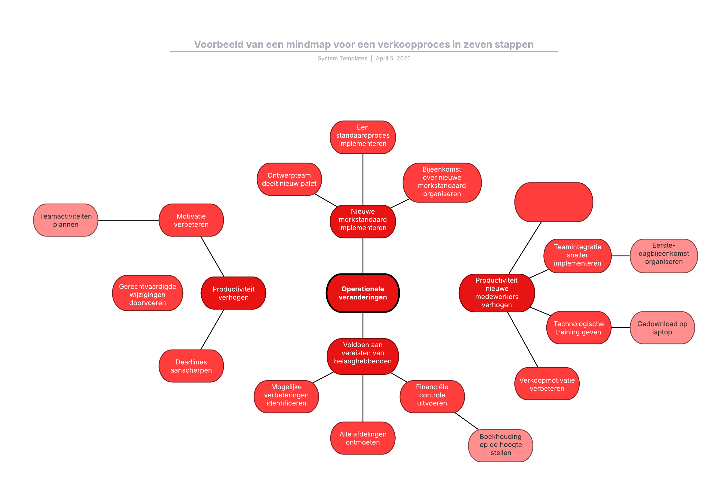 Met deze sjabloon voor een mindmap van een verkoopproces in zeven stappen kunt u: