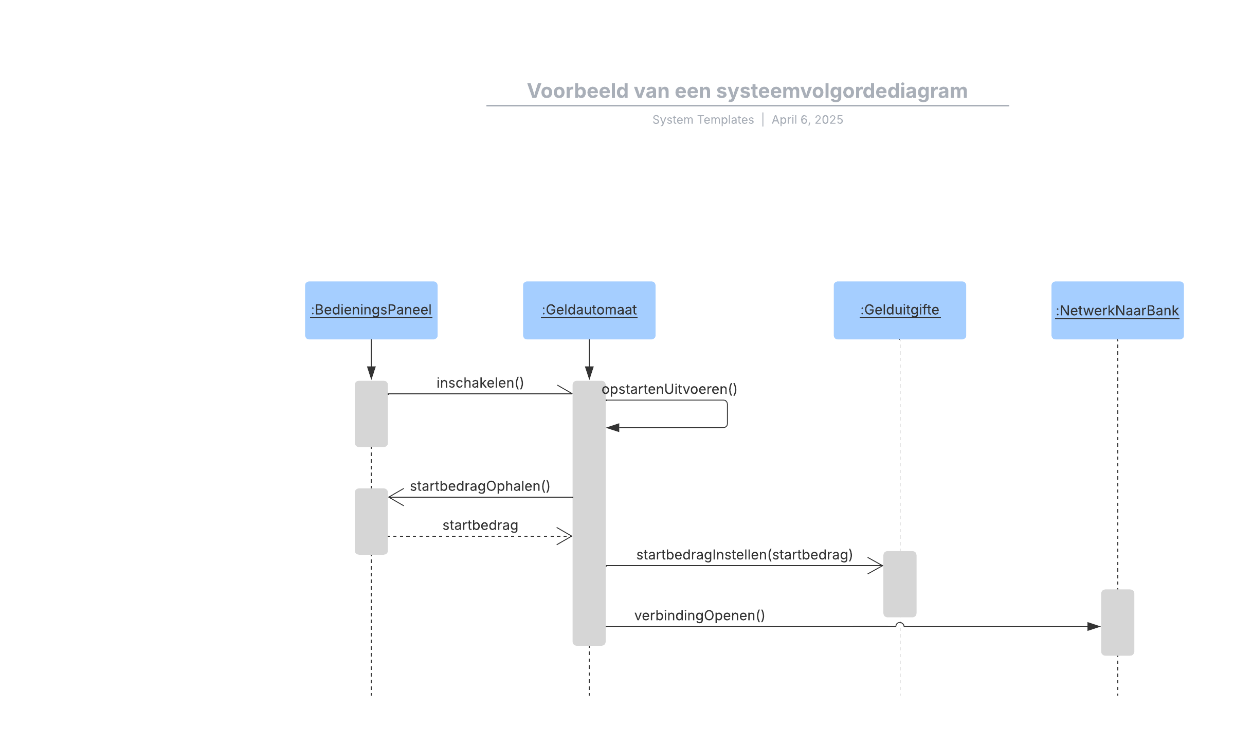 Met deze voorbeeldsjabloon van een systeemvolgordediagram kunt u:
