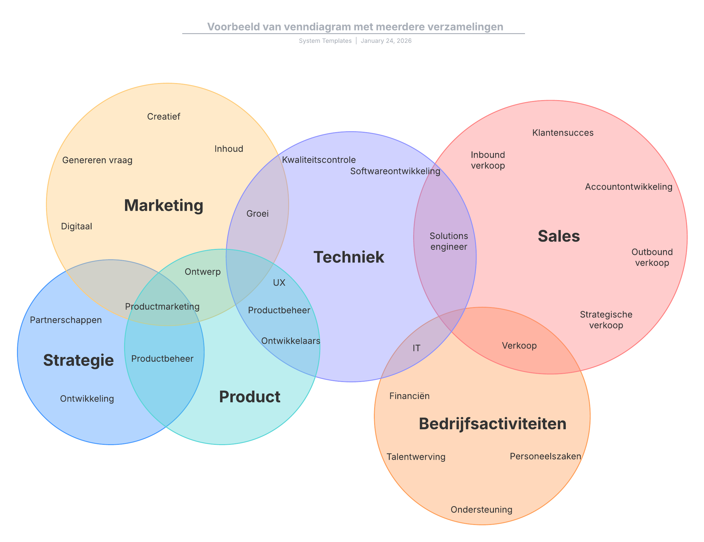 Voorbeeld van venndiagram met meerdere verzamelingen