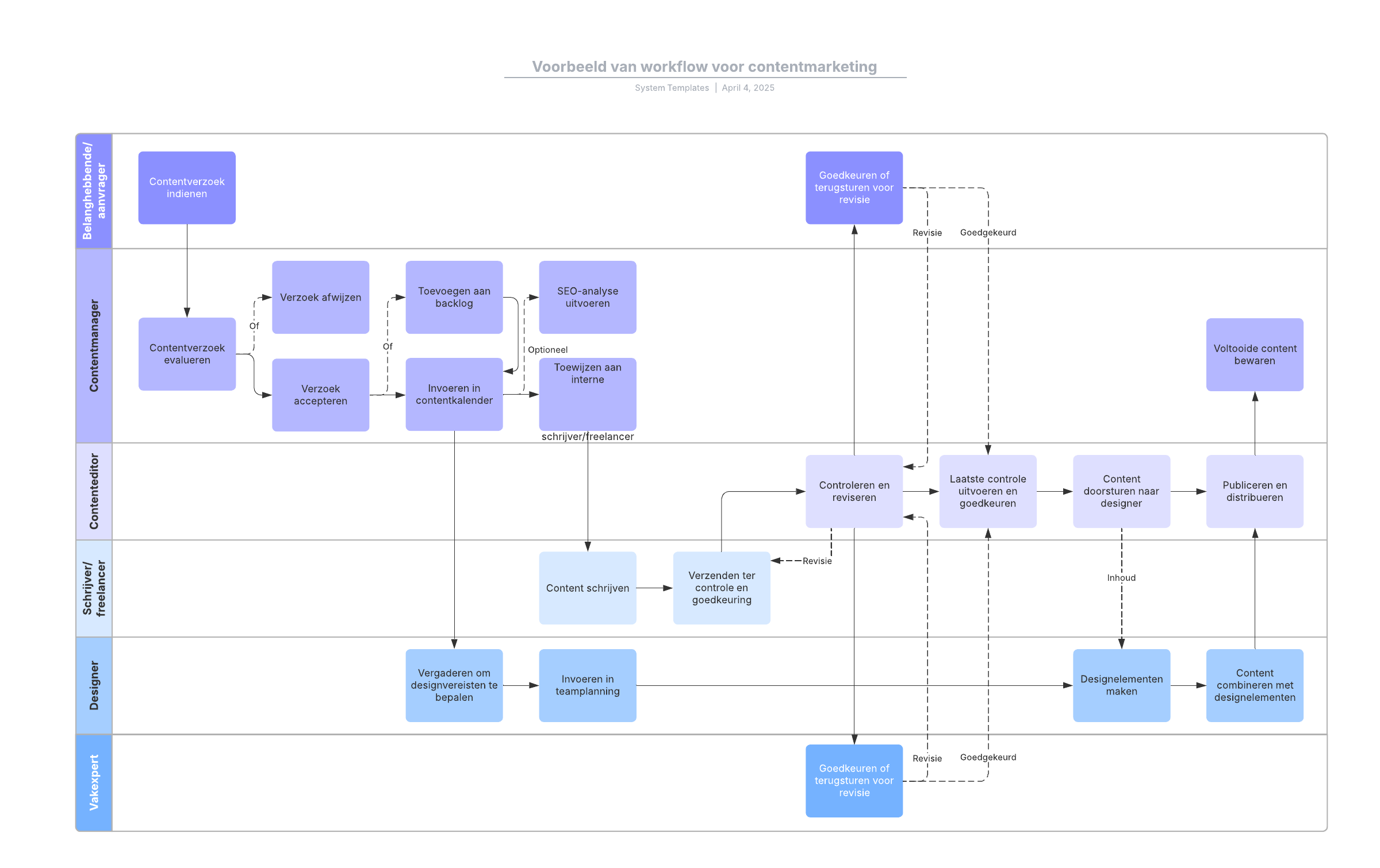 Open deze sjabloon voor een gedetailleerd voorbeeld van een workflow voor contentmarketing dat u kunt aanpassen op uw use case.