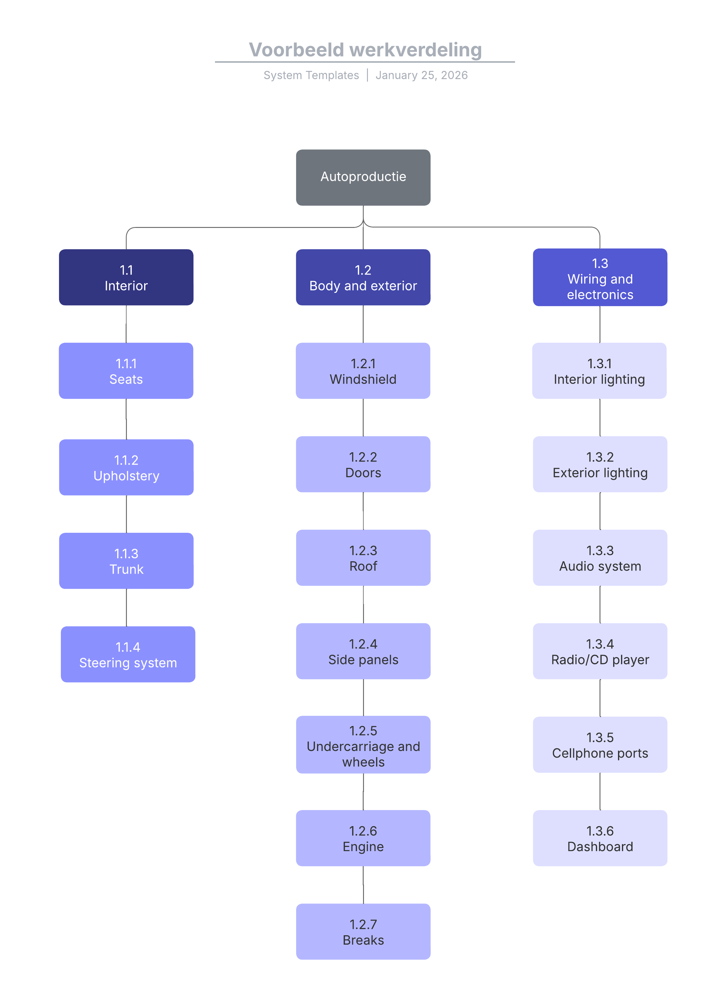 Open deze sjabloon voor een gedetailleerd voorbeeld van een werkverdeling die u kunt aanpassen op uw use case.