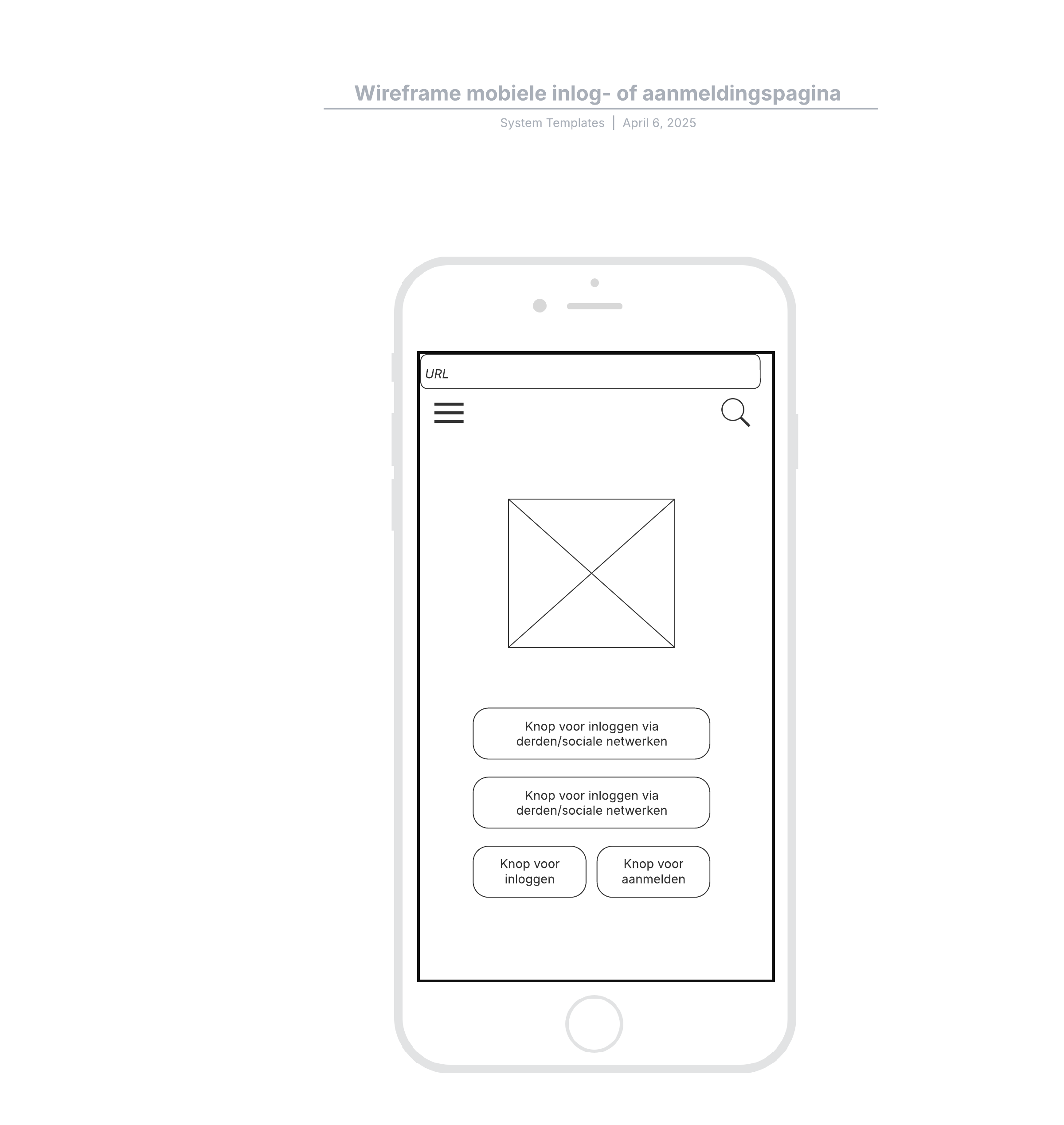 Wireframe mobiele inlog- of aanmeldingspagina