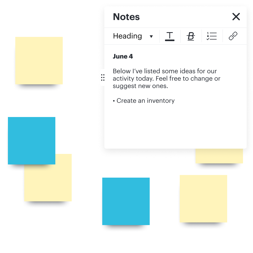 Zapisz swój kolejny wielki pomysł za pomocą karteczek samoprzylepnych, narzędzi do rysowania odręcznego i nieograniczonego obszaru roboczego.
