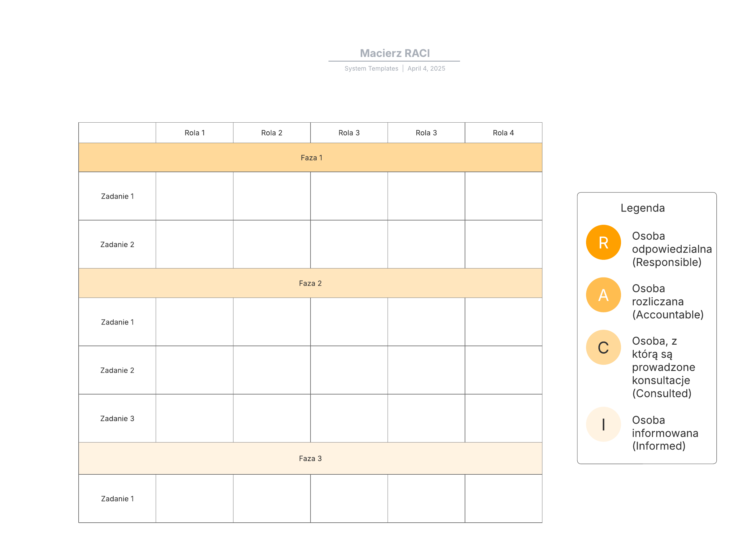 Otwórz ten szablon i dodaj zawartość, aby dostosować macierz RACI do swojego przypadku użycia.
