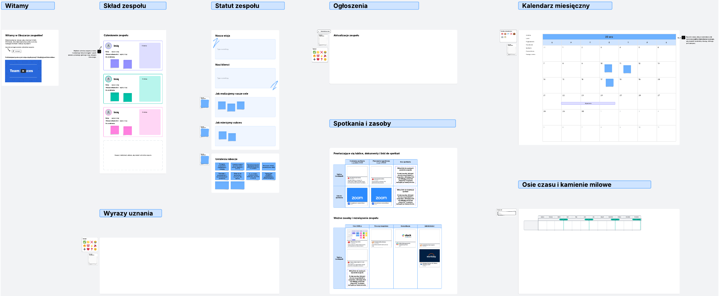 Wykorzystaj ten obszar, aby utworzyć jedno źródło informacji, koordynować pracę lub po prostu połączyć się i dobrze bawić ze swoim zespołem.