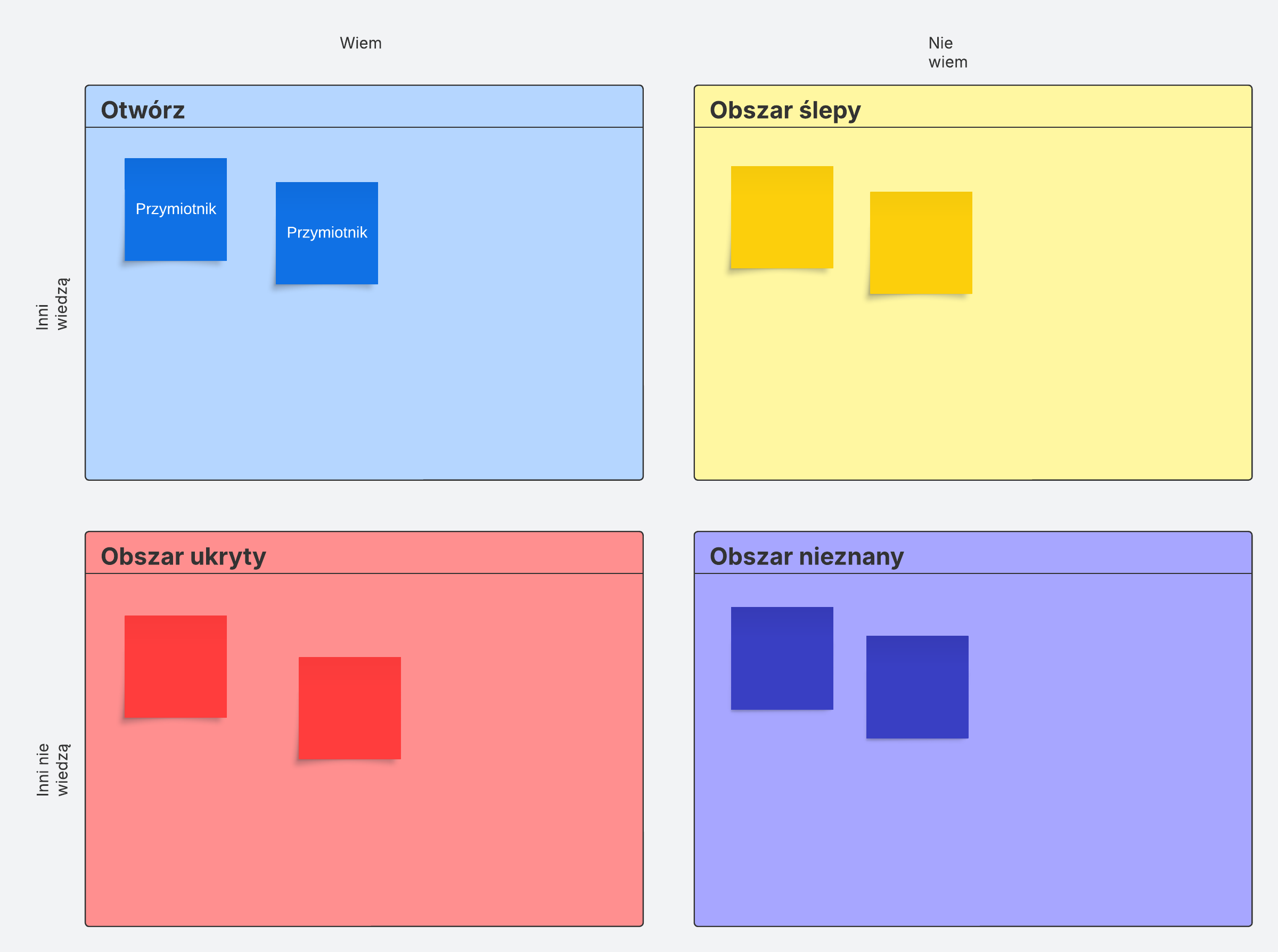 Okno Johari pomaga wzmocnić relacje osobiste i międzyludzkie. Poznaj zachowania i cechy osobowości i przyporządkuj je do obszaru otwartego, ślepego, ukrytego i nieznanego, aby poprawić samoświadomość i pracę zespołową.