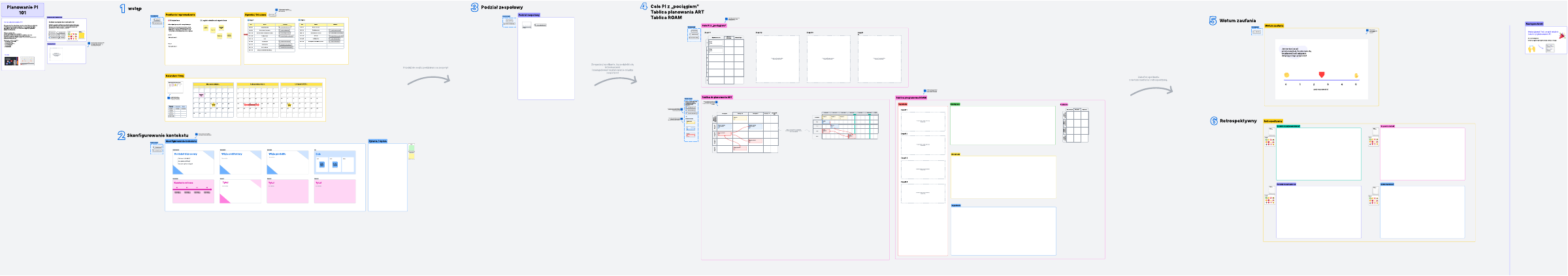 Zoptymalizuj następną sesję planowania PI, korzystając z tego szablonu na poziomie Przedsiębiorstwo, który został zaprojektowany, aby zaoszczędzić czas na konfigurowaniu tablicy. Szablon ten zawiera inteligentne funkcje, takie jak wstępnie skonfigurowane tablice rozdzielcze, które pomogą Twojej grupie w pełni wykorzystać każdą sesję planowania.