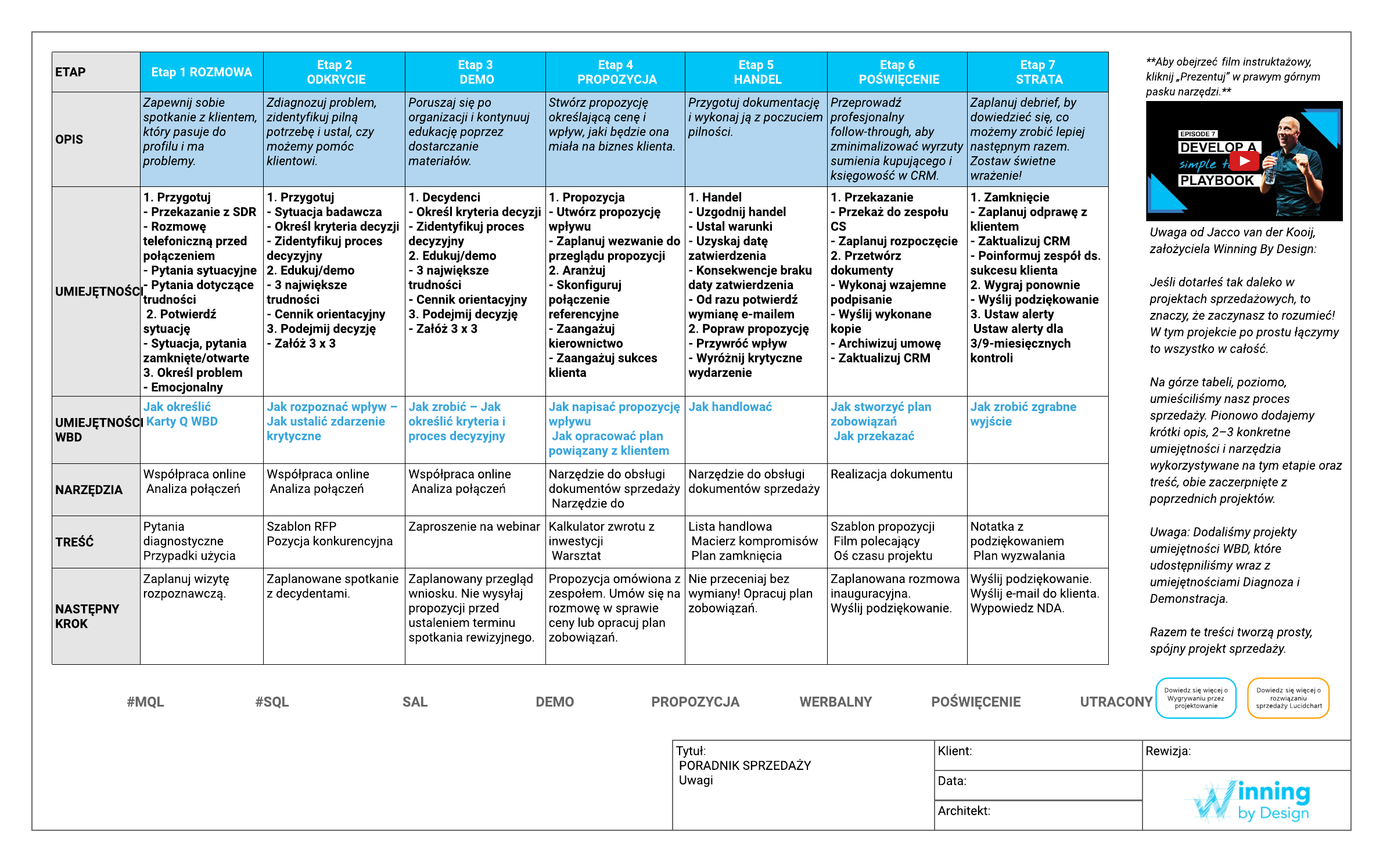 "Ten szablon poradnika sprzedaży firmy Winning By Design może pomóc: