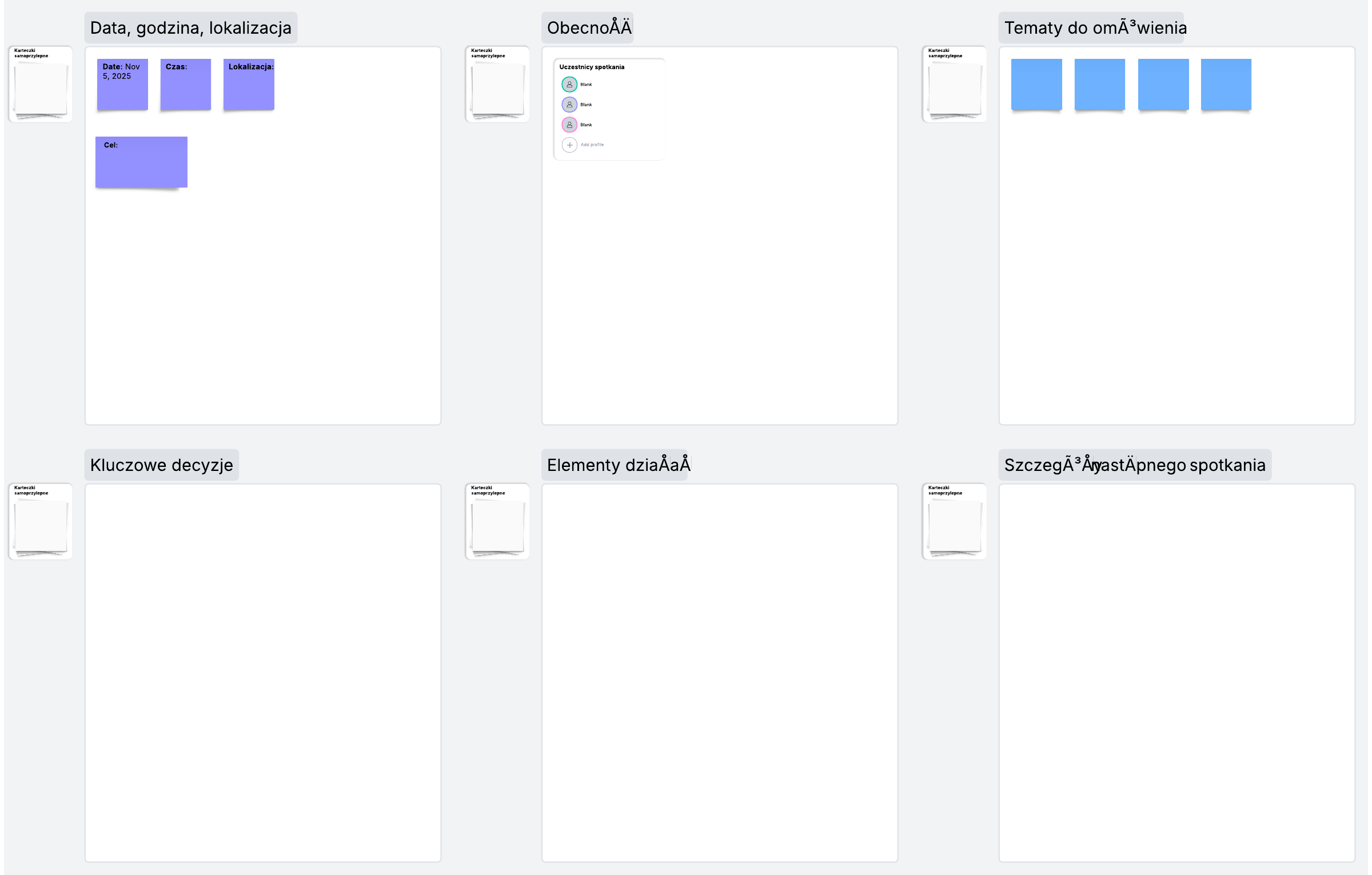 Otwórz szablon i dodaj zawartość, aby dostosować diagram notatek ze spotkania zespołu do bieżącego projektu.