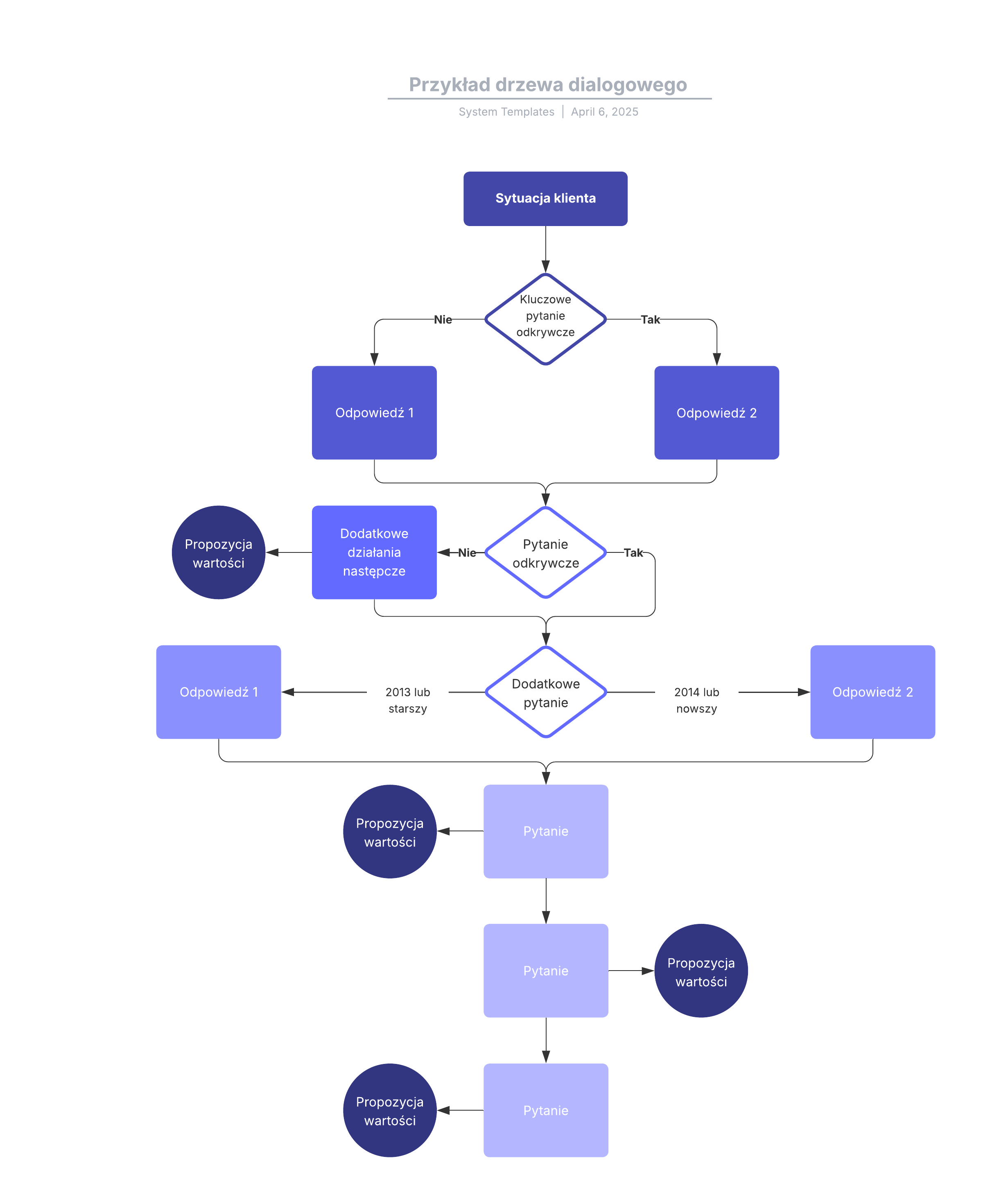 Otwórz ten szablon, aby zobaczyć szczegółowy przykład drzewa dialogowego, który możesz dostosować do swojego przypadku użycia.