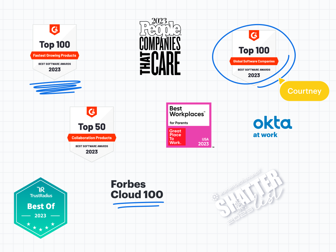 Pelo quarto ano consecutivo, a Lucid foi classificada na lista anual da Forbes Cloud 100 com as melhores empresas de computação em nuvem privada do mundo. Também fomos indicados como uma das 100 Melhores Empresas Globais de Software do G2. Enquanto isso, o Lucidchart foi classificado como o 13º aplicativo de negócios mais usado no mundo no Businesses at Work de 2023 da Okta.