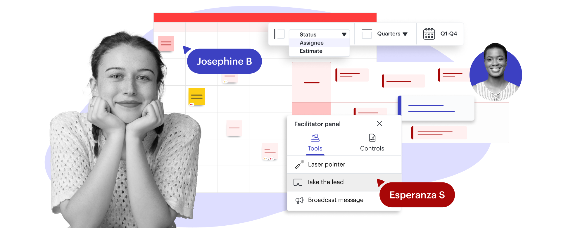 Fique conectado e tome decisões com mais rapidez. Use o Lucidspark para sincronizar equipes em reuniões, planejamento sprint e sessões de retrospectiva.