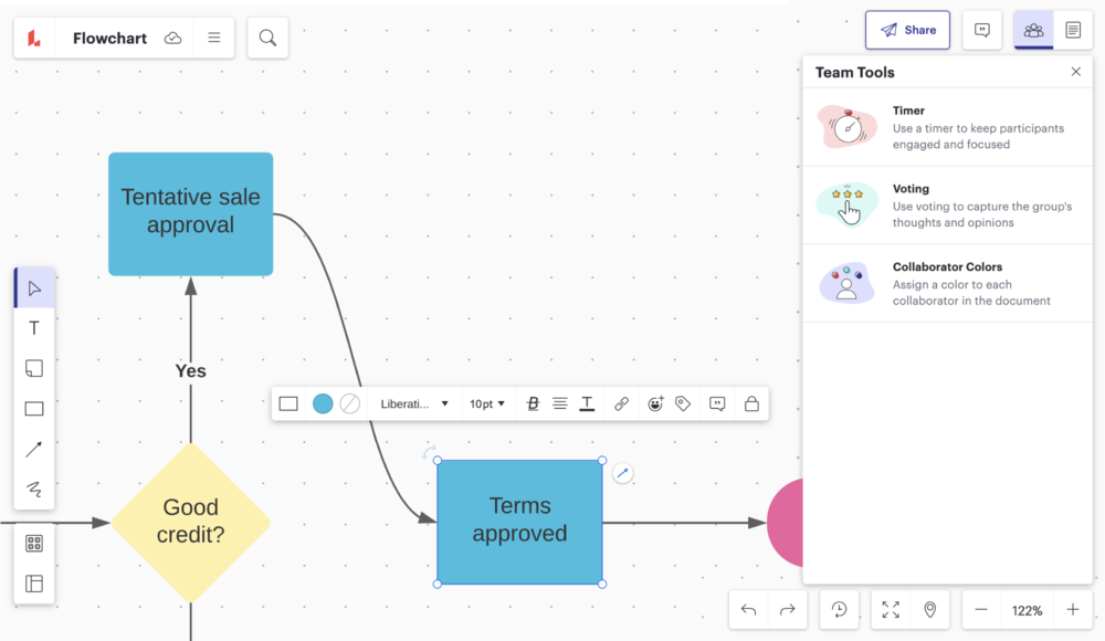 Forneça à sua equipe uma imagem clara do seu fluxo de trabalho, com um espaço infinito para gerar ideias, criar e colaborar em seu fluxo de trabalho online. Praticamente qualquer departamento ou empresa pode usar nosso programa de diagrama de fluxo de trabalho para visualizar seus processos como um todo enquanto coletam informações entre as equipes e acompanham o andamento das tarefas. O Lucidspark organiza todas as suas informações em um único mural, para que todos os seus colaboradores possam acessar, se atualizar e se comunicar sobre o fluxo de trabalho sem ter que buscar dados em diversos lugares diferentes.