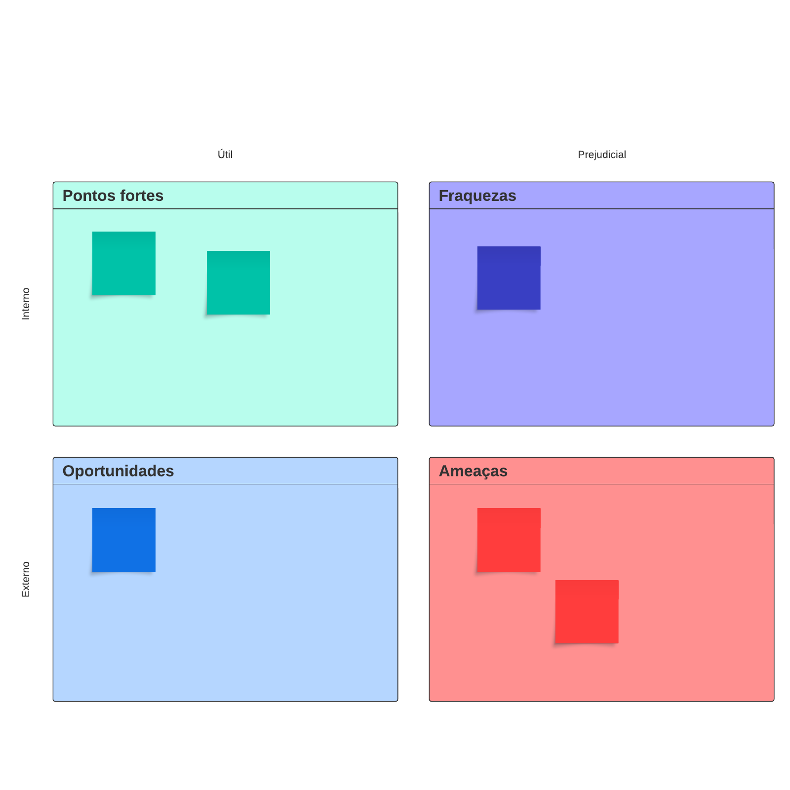 Identifique os pontos fortes, pontos fracos, oportunidades e ameaças do seu negócio com nosso software online de fazer análise SWOT.