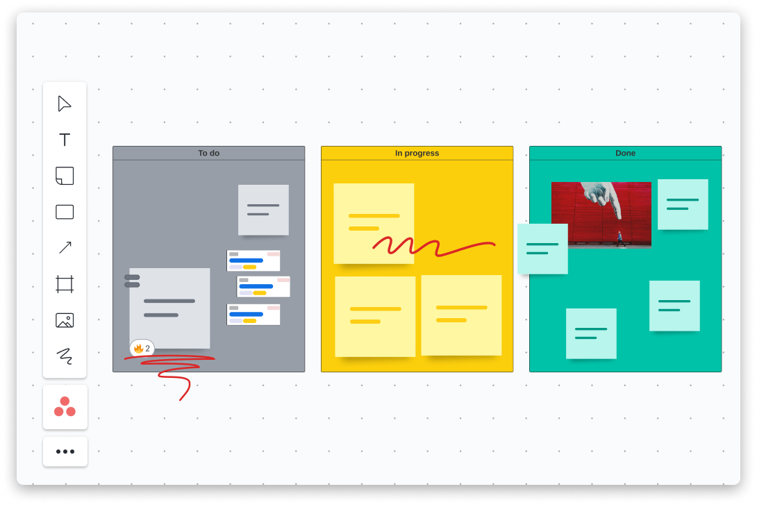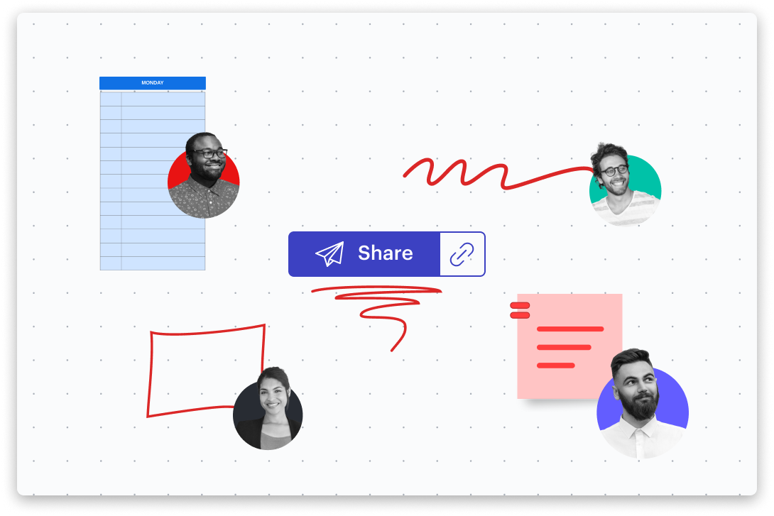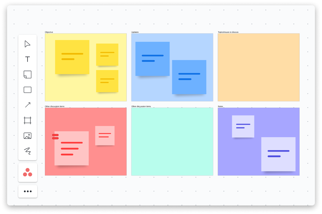 Certifique-se de que todos estejam alinhados quando o assunto for projetos, prazos ou compromissos pessoais, compartilhando seu planner digital com sua equipe ou seus familiares. As notas adesivas, anotações e outros recursos colaborativos do Lucidspark podem ajudar você a coletar informações e compartilhar feedback.