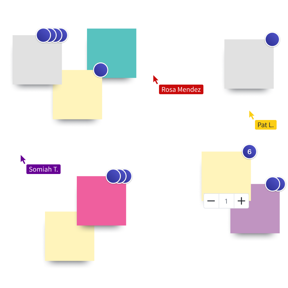 Ofereça a cada membro da equipe a oportunidade de participar e votar na melhor ideia. Contabilize os resultados e agrupe as ideias de acordo com o número de votos. É uma maneira fácil de otimizar a tomada de decisões e realmente ouvir a sua equipe.