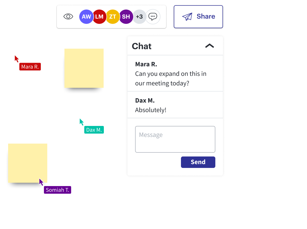 Independentemente de trabalhar no mesmo escritório ou não, trabalhem juntos em um espaço visual criado para você e sua equipe. Converse sobre ideias em tempo real com recursos internos de comentários, marcações e bate-papo. E com espaço para um número ilimitado de colaboradores, todos podem contribuir.