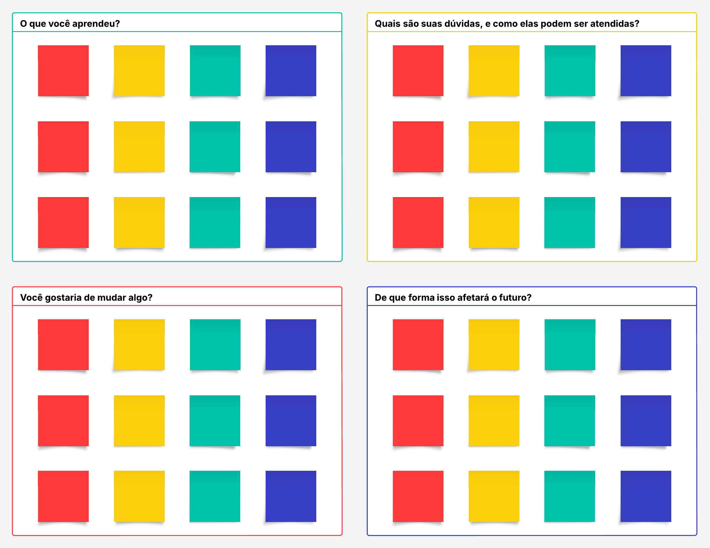 Use a análise de reuniões para melhorar a eficiência da sua equipe. Avalie se compreenderam os conceitos e receba opiniões dos membros da equipe. Com o modelo de análise de reuniões, todos os participantes podem opinar.