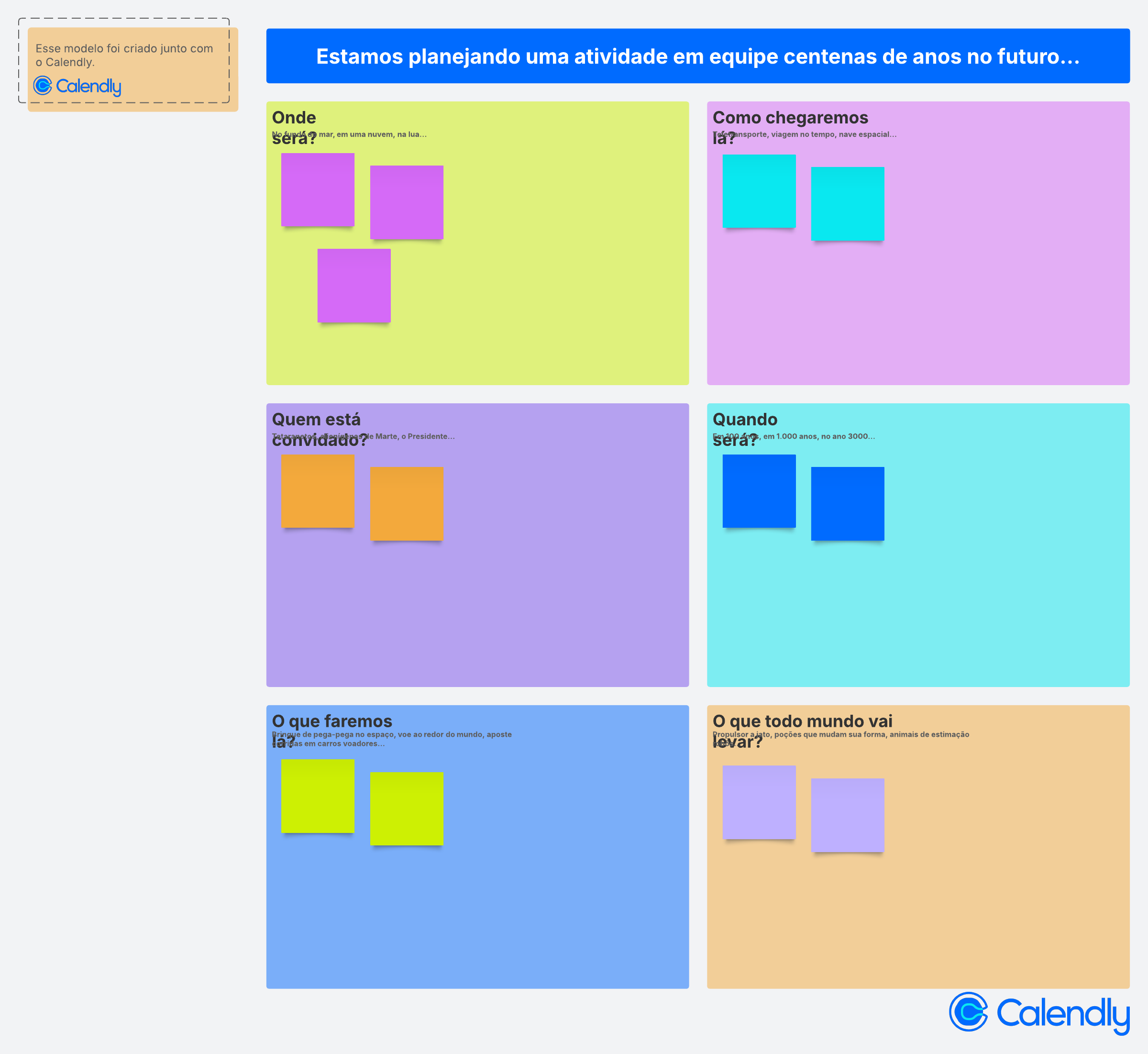 Use esta atividade apresentada pelo Calendly como um quebra-gelo divertido, e planeje uma atividade hipotética em equipe centenas de anos no futuro.