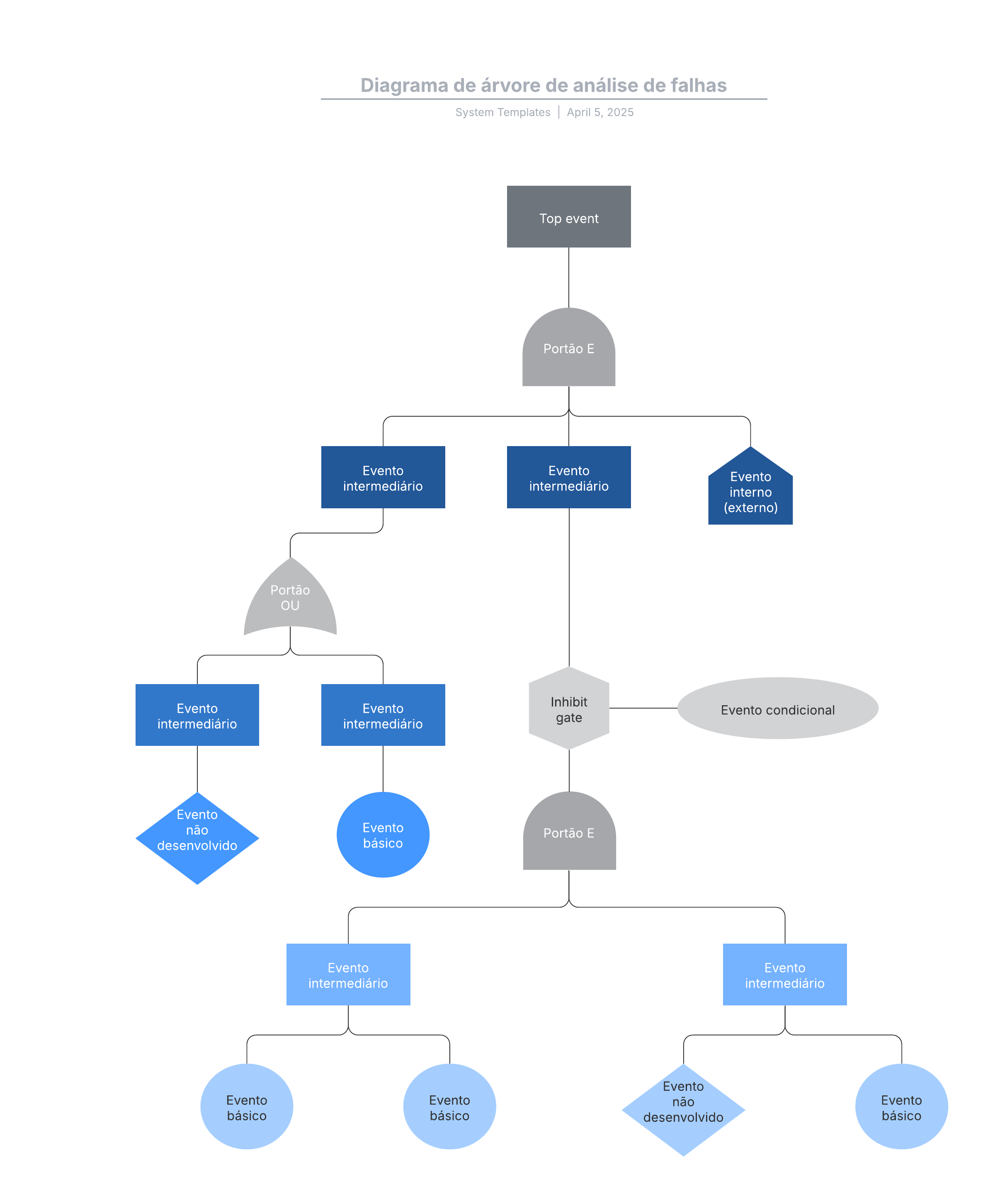 Abra este modelo e adicione conteúdo para personalizar o diagrama de árvore de análise de falhas de acordo com seu caso de uso.