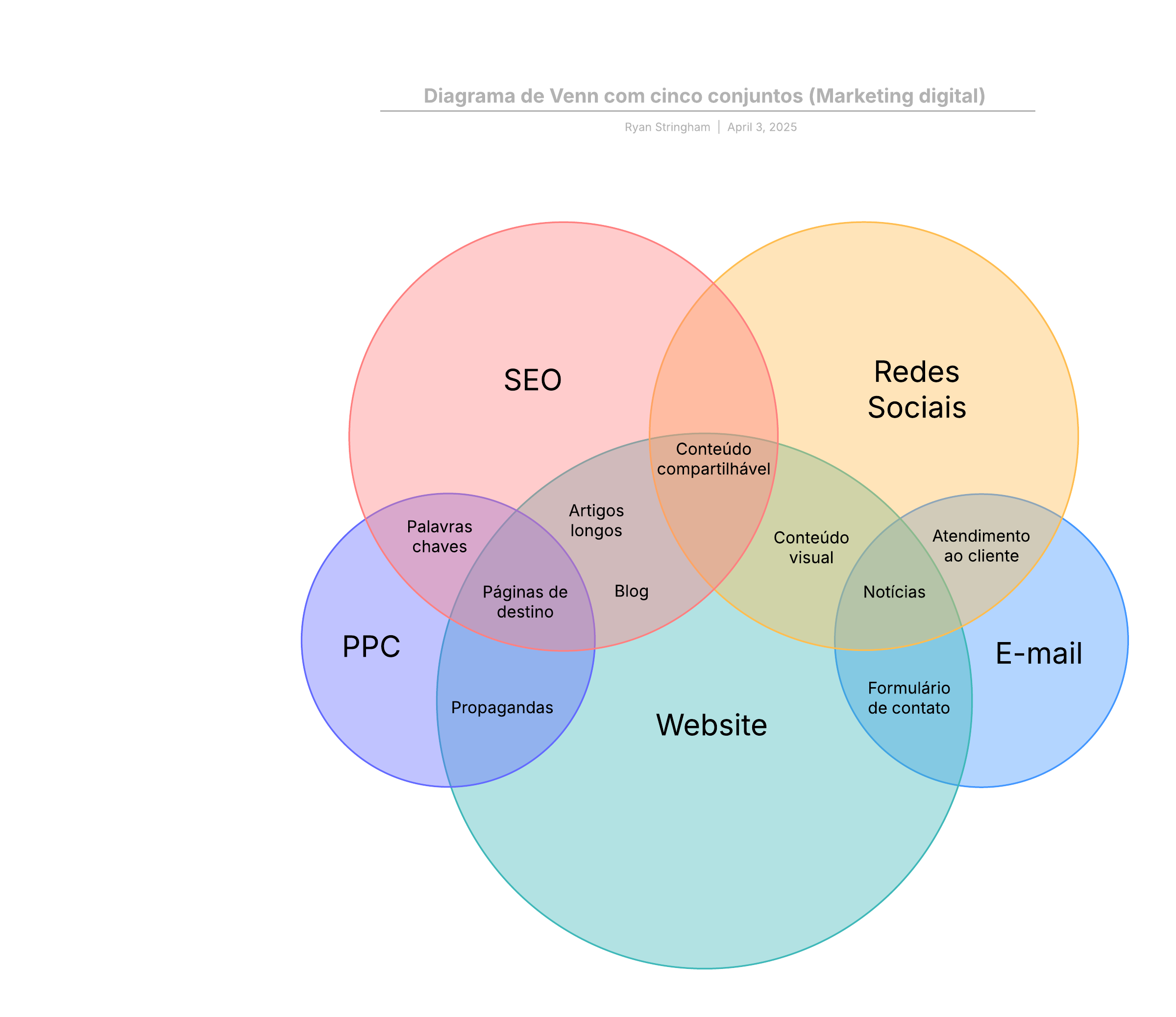Diagrama de Venn com cinco conjuntos (Marketing digital)
