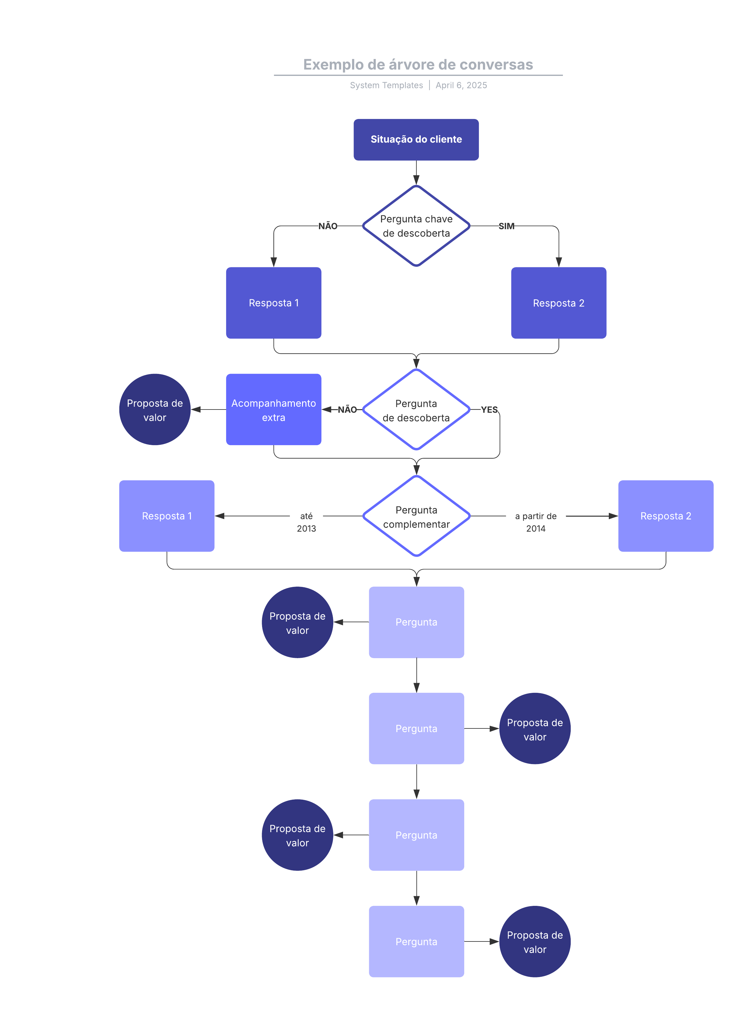 Abra este modelo para ver o exemplo detalhado de uma árvore de conversação, personalizável de acordo com seu caso de uso.