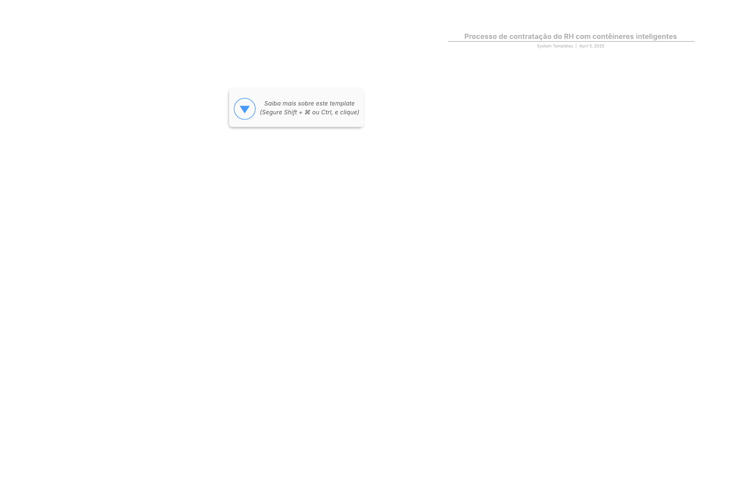 Abra este modelo para ver um exemplo detalhado de um processo de contratação do RH com contêineres inteligentes, personalizável de acordo com o seu caso de uso.