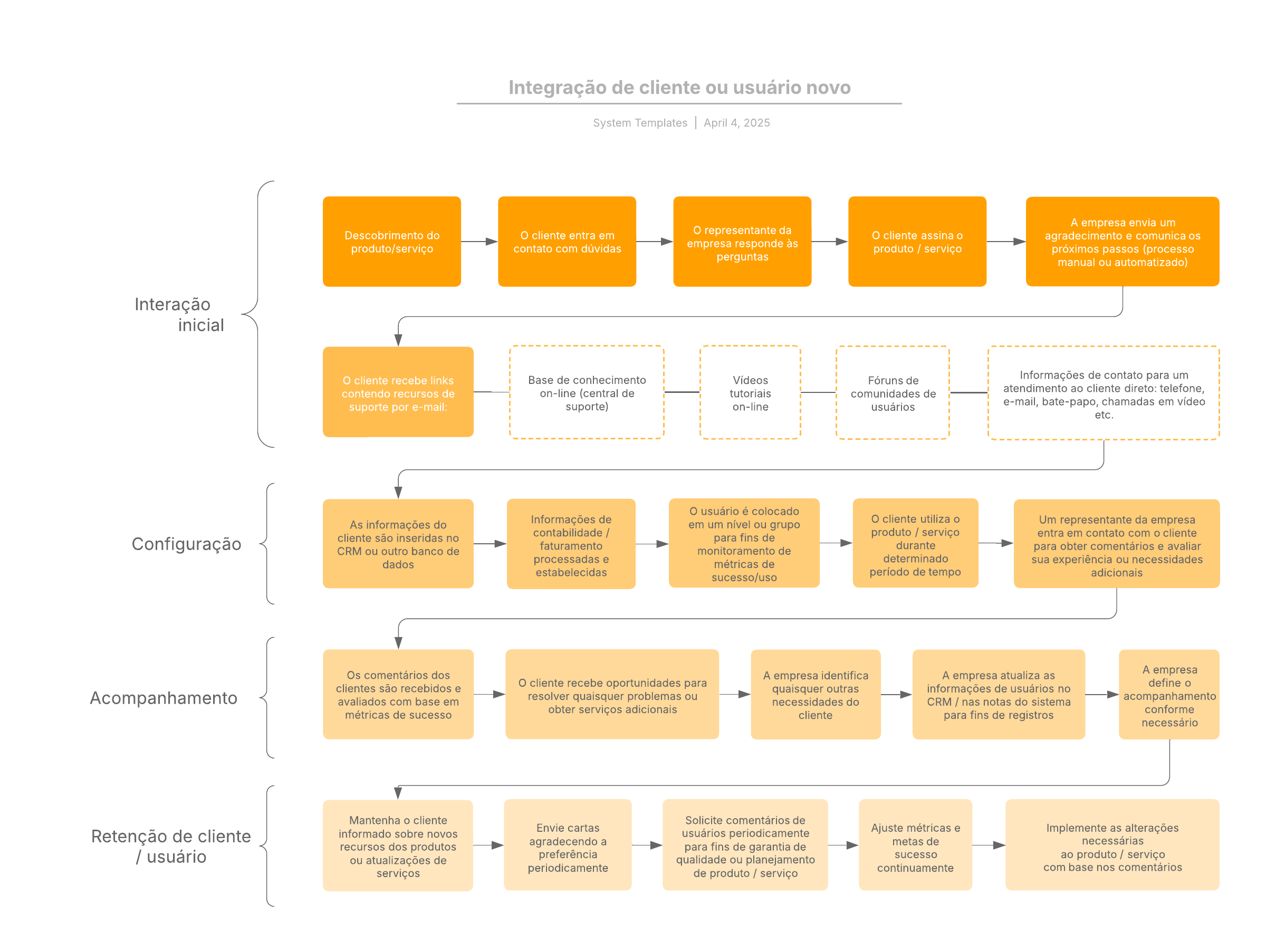 Este modelo cria um diagrama de uma possível trajetória de um cliente, desde a interação inicial à configuração e retenção.