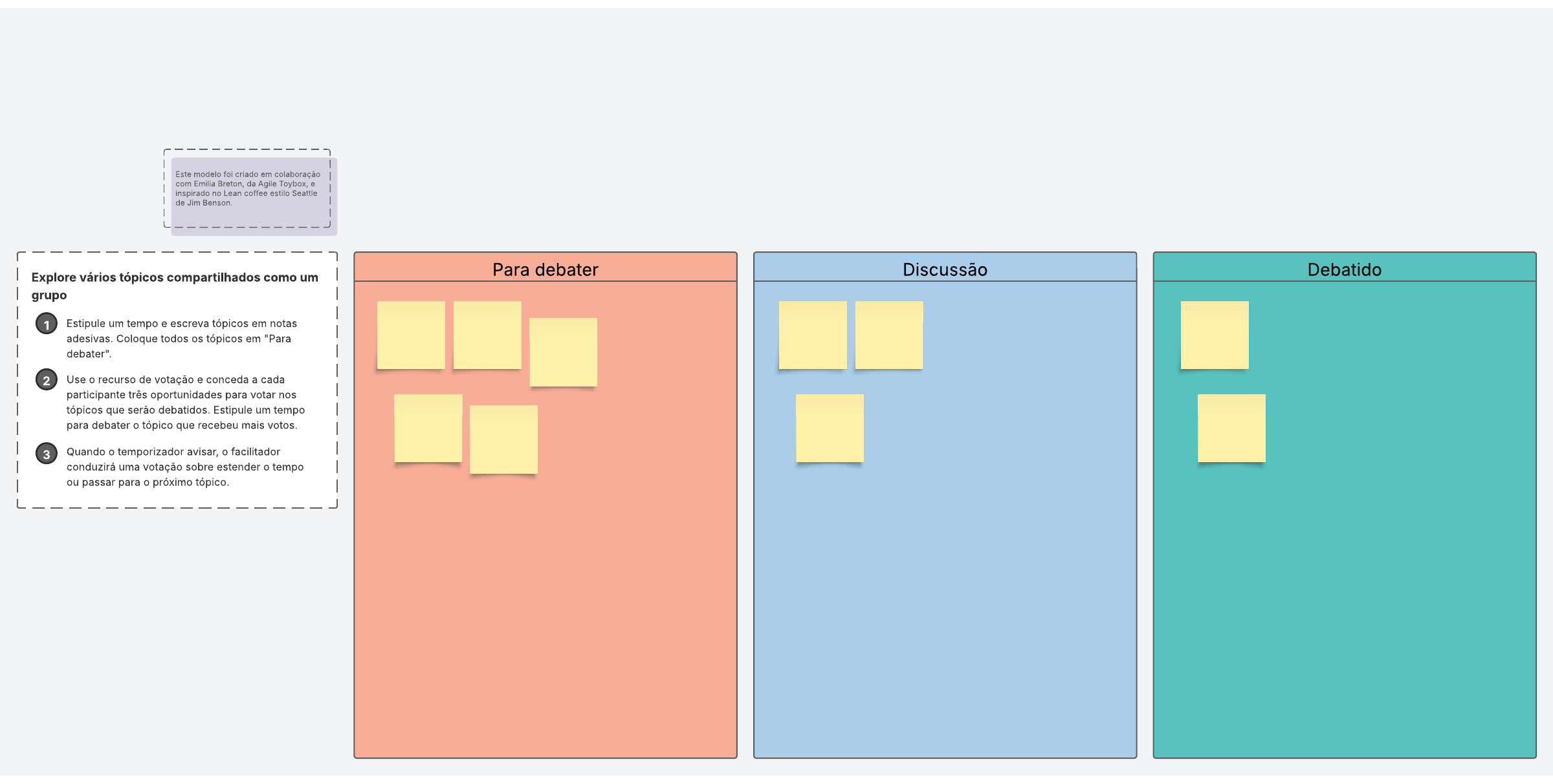 Debata tópicos compartilhados de forma fácil e rápida por meio de uma abordagem enxuta ao estilo Seattle.